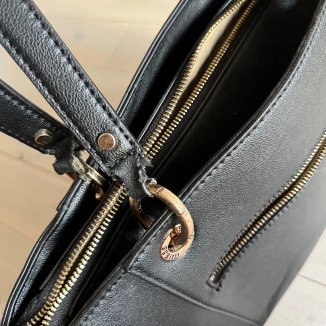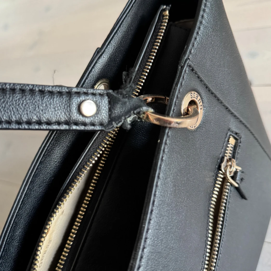 Superfin väska. Bredd: 31cm. Djup: 12. Höjd: 26cm. Slitna där banden fäster till axelbandet, annars fin och hel! Nypris 1800kr.
