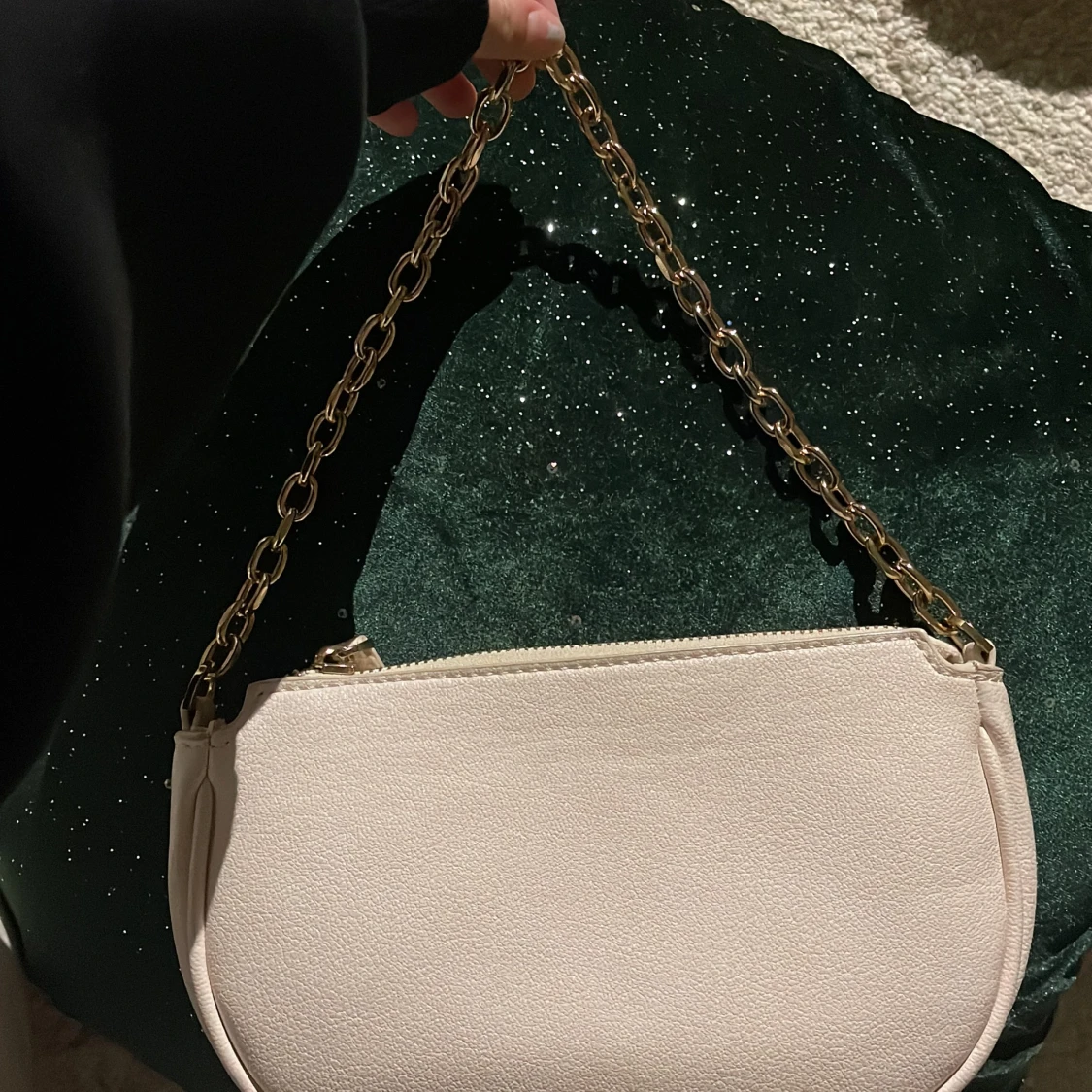 Fin axelväska från Mango i beige/rosa med en guldig kedja. Den är fräsch och oanvänd med hyfsat mycket förvaring inuti💕 (köpt för 399kr)