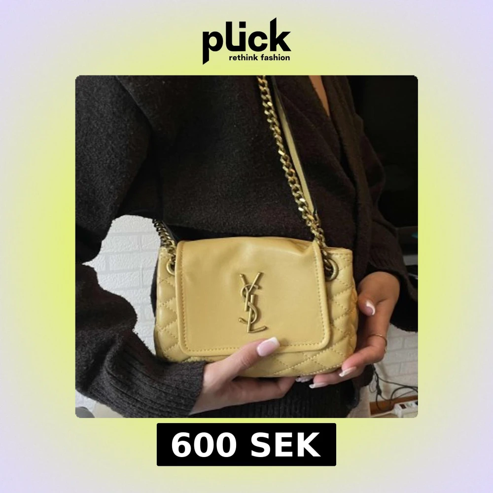 Säljer en snygg gul axelväska från Saint Laurent med ikoniskt YSL-emblem i guld framtill. Väskan är quiltad i mjukt skinn och har en kedjerem i guldmetall. Perfekt storlek för det viktigaste och har ett innerfack. Supersnygg detalj till din outfit! (Defekter syns på bild)