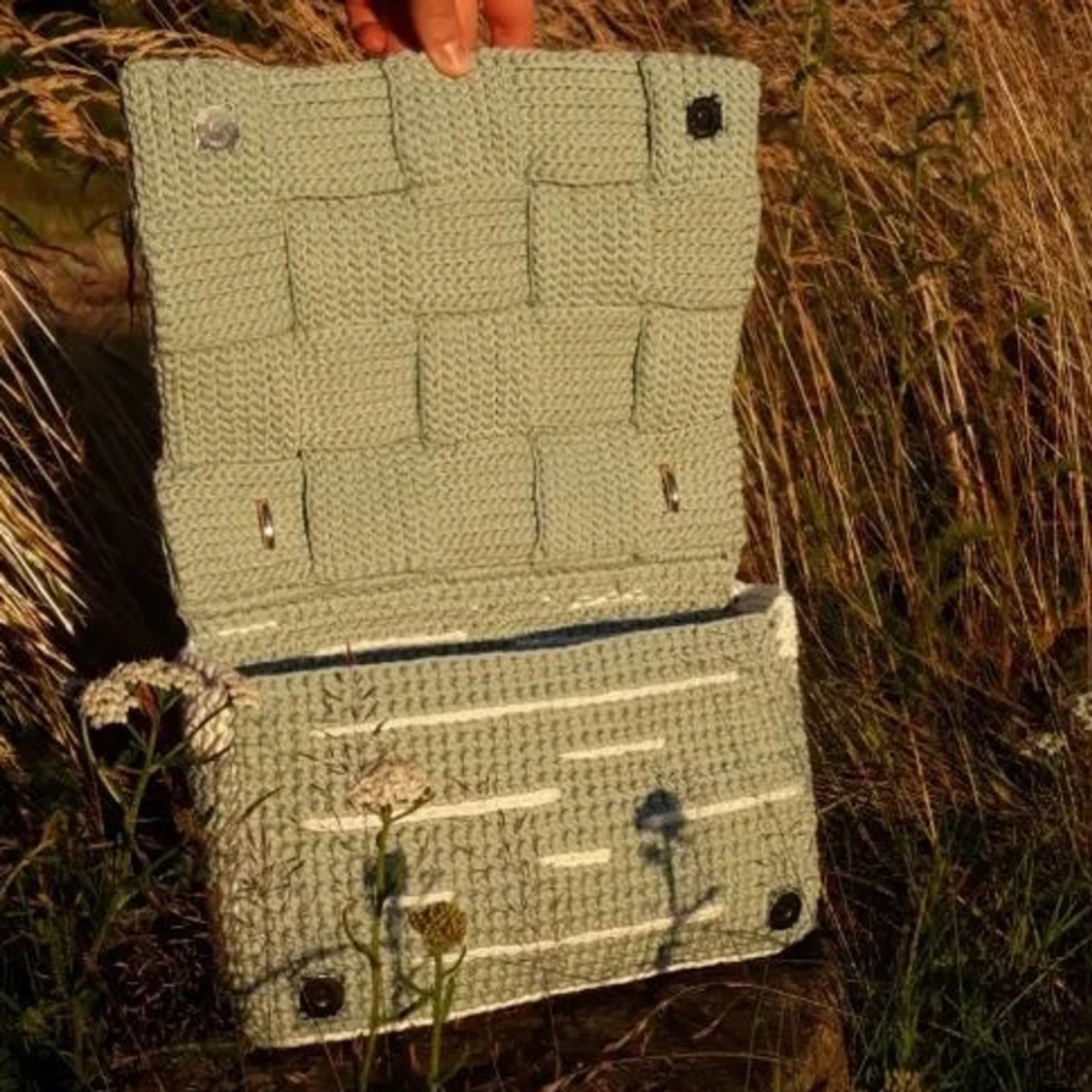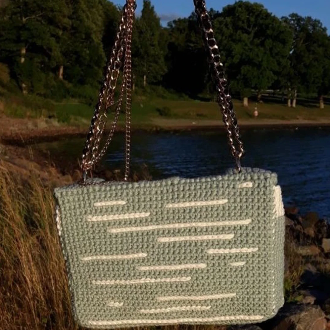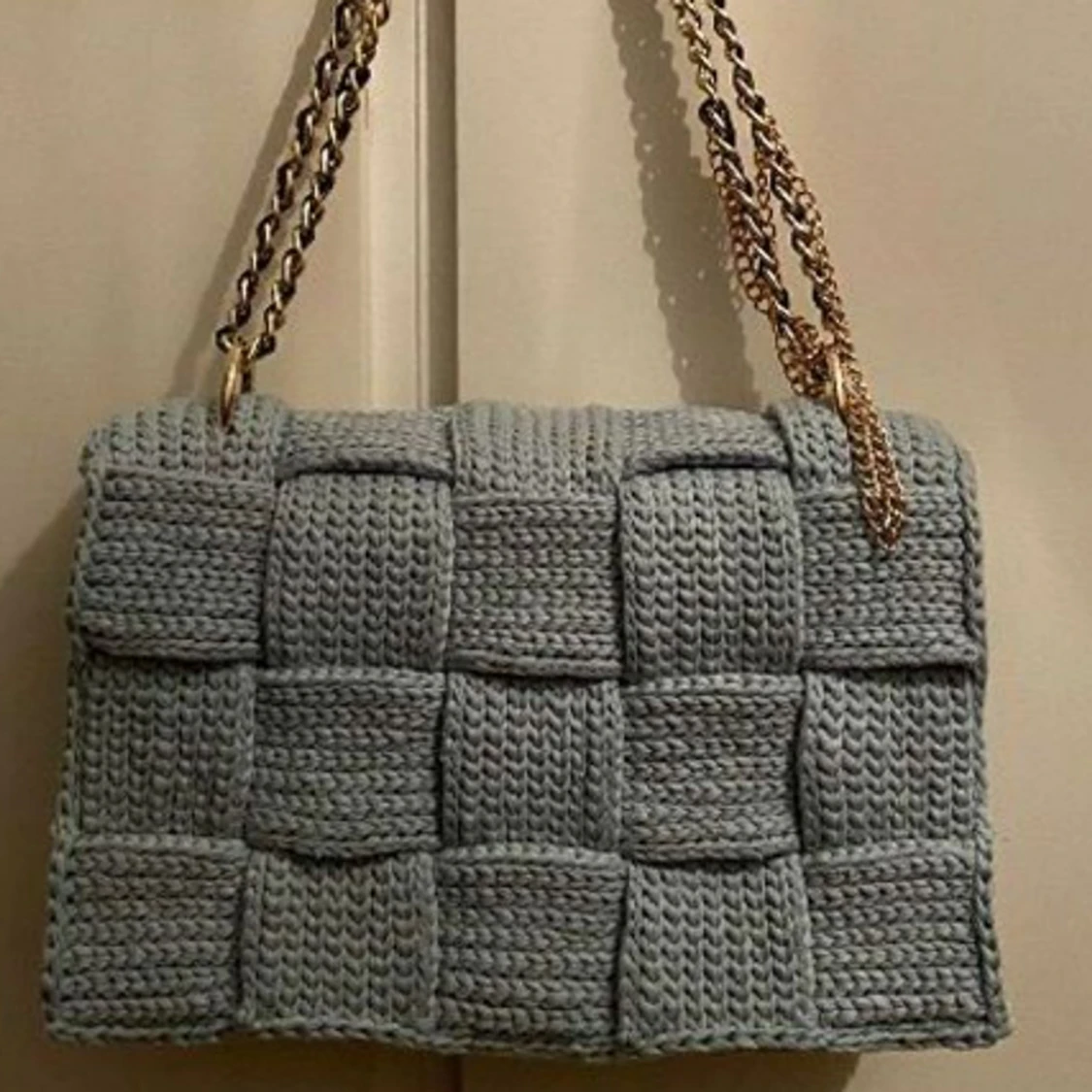 Maffig turkås väska som inspirerats av Bottega Venettas Cassette väska. Har vita linjer för mer stadga, som kom att likna moln. längd: 27.5cm höjd: 18.5cm djup: 5cm frakt:99:-