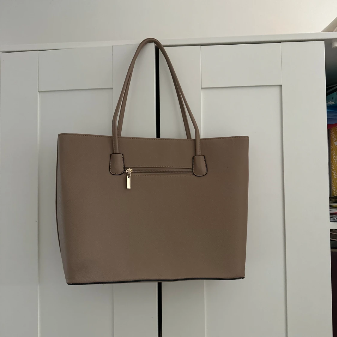 Beige handväska med guld detaljer. Iprincip oanvänd och i mycket gott skick. Köparen står för frakten!