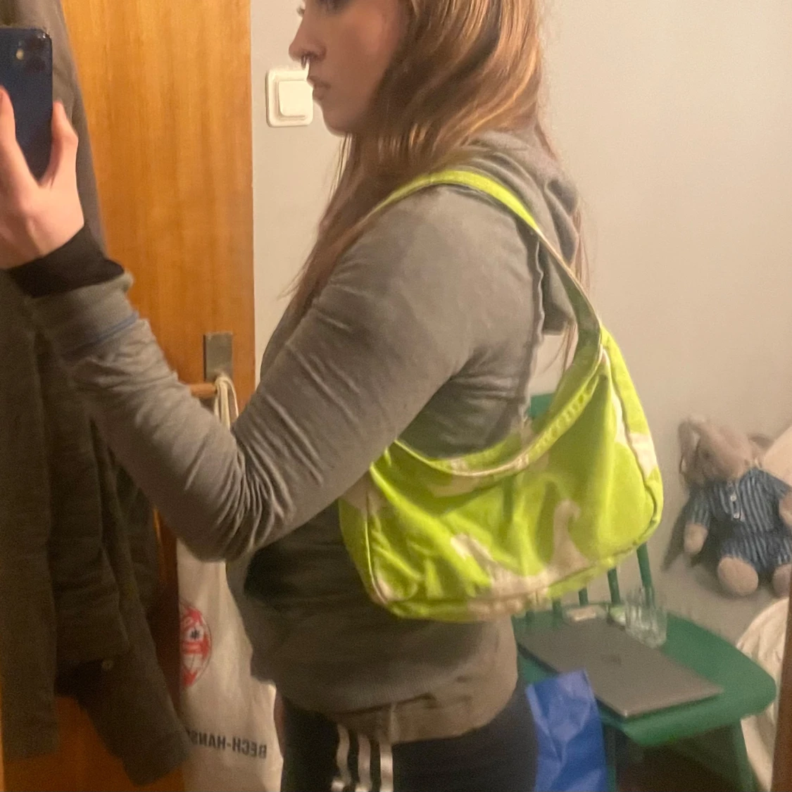 Säljer en limegrön & vit axelväska från Marimekko med ett unikt mönster. Bredd ca 28cm, höjd ca 17cm. Vissa små fläckar på insidan och liite ”discoloration” på insidan av bandet men knappt märkbart, som det är i fotona. Superbra skick utöver det, väldigt rejält material och hög kvalitet.
