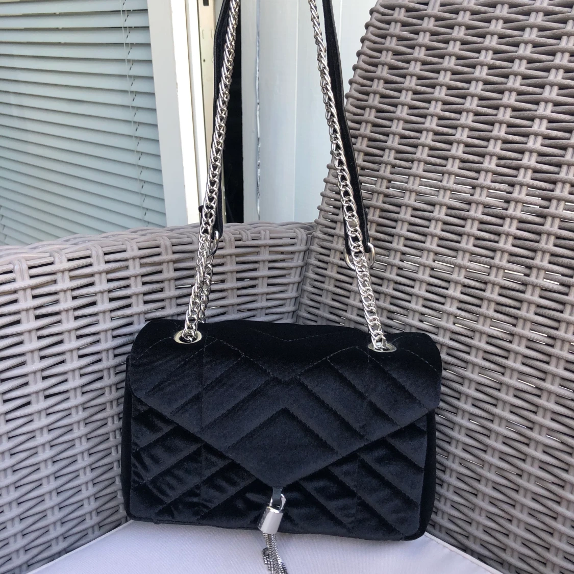 En oanvänd väska från Bikbok, med silver detaljer och är i sammet. Det går att förkorta och förlänga axelremen så att man kan bära den på olika sätt. Frakt tillkommer annars finns jag i Stockholm 🖤