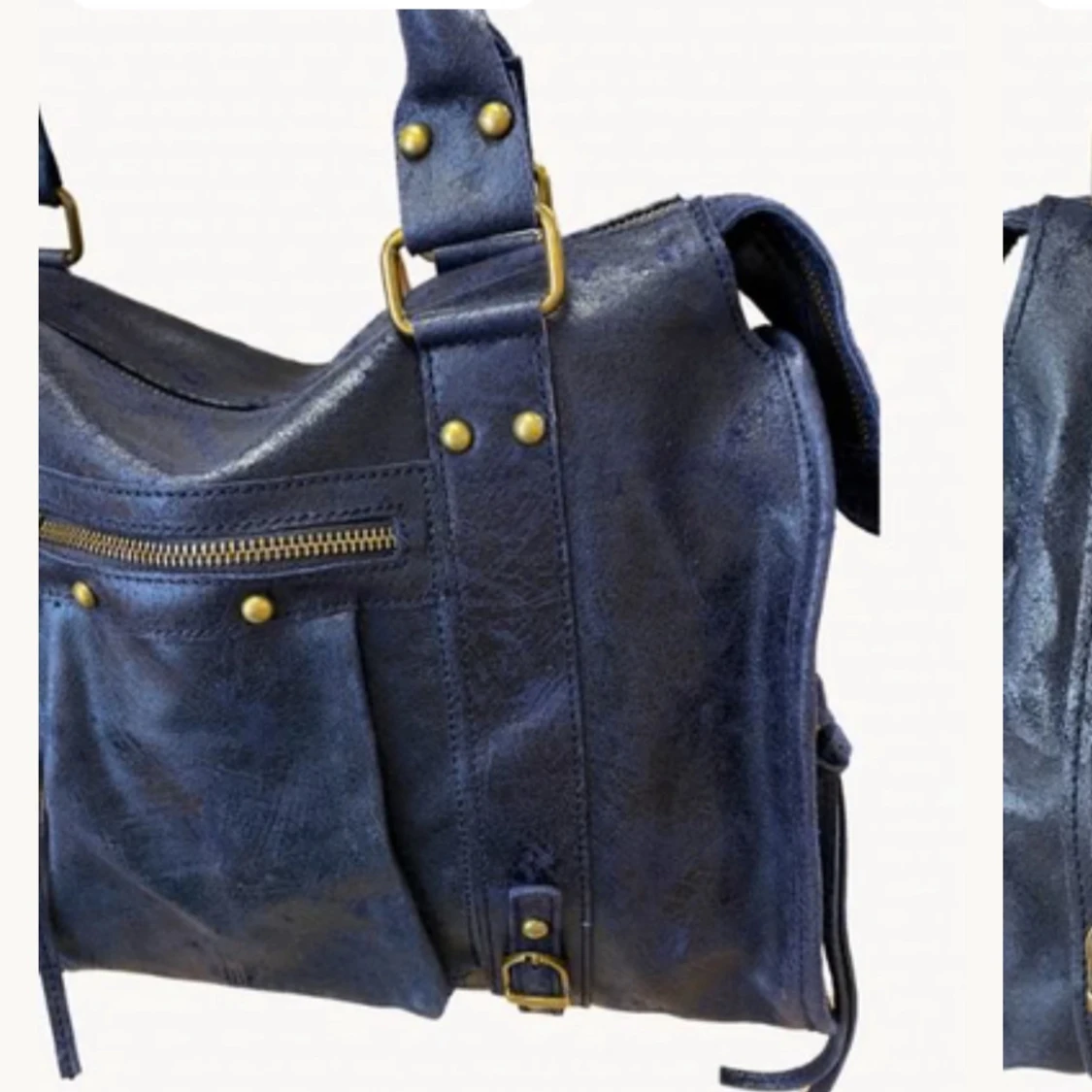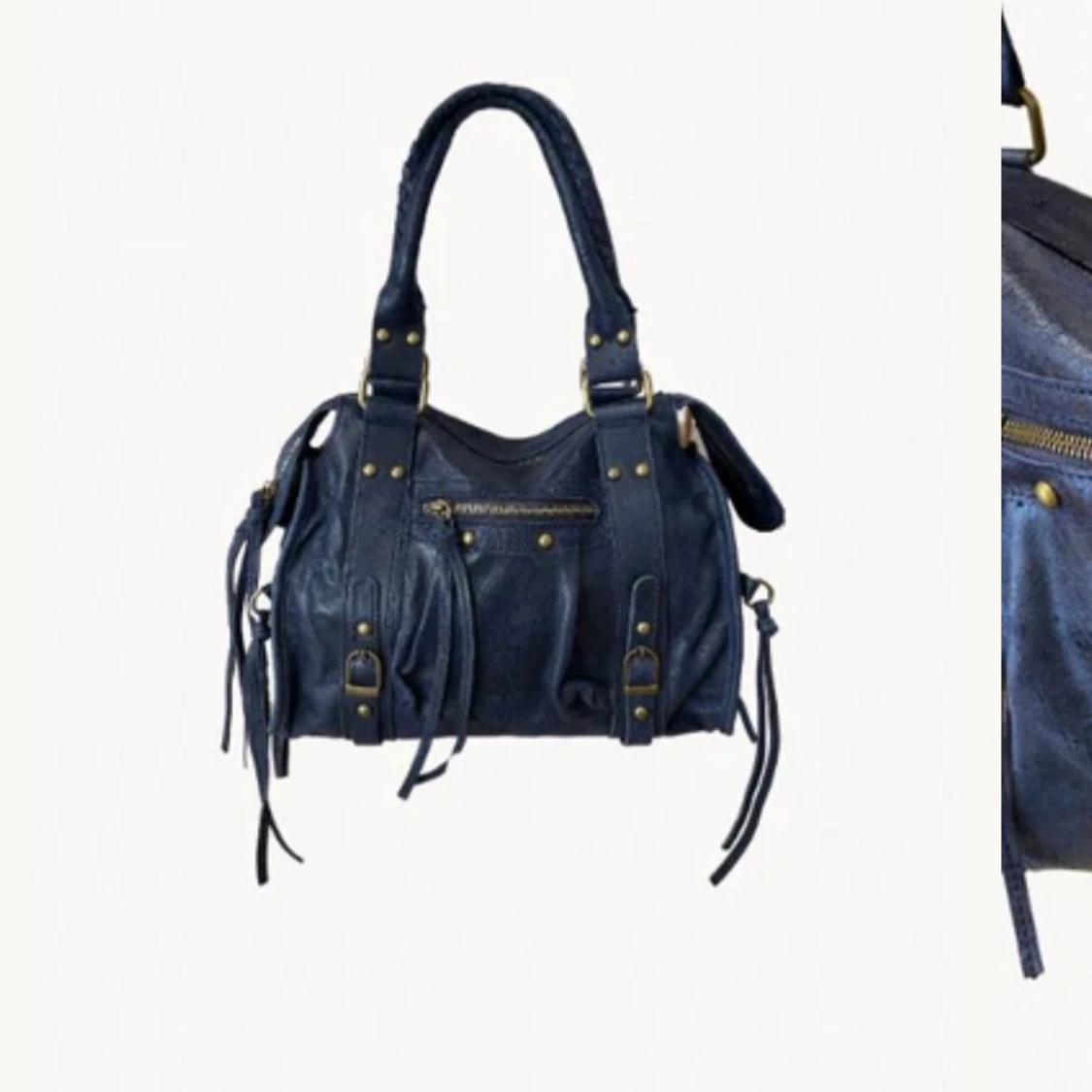 Snygg mörkblå handväska i skinn med guldiga nitar och dragkedjor. Väskan är helt oanvänd då jag råkade köpa 2 stycken! Original pris är 1030kr. Meddela gärna om ni vill ha flera bilder!