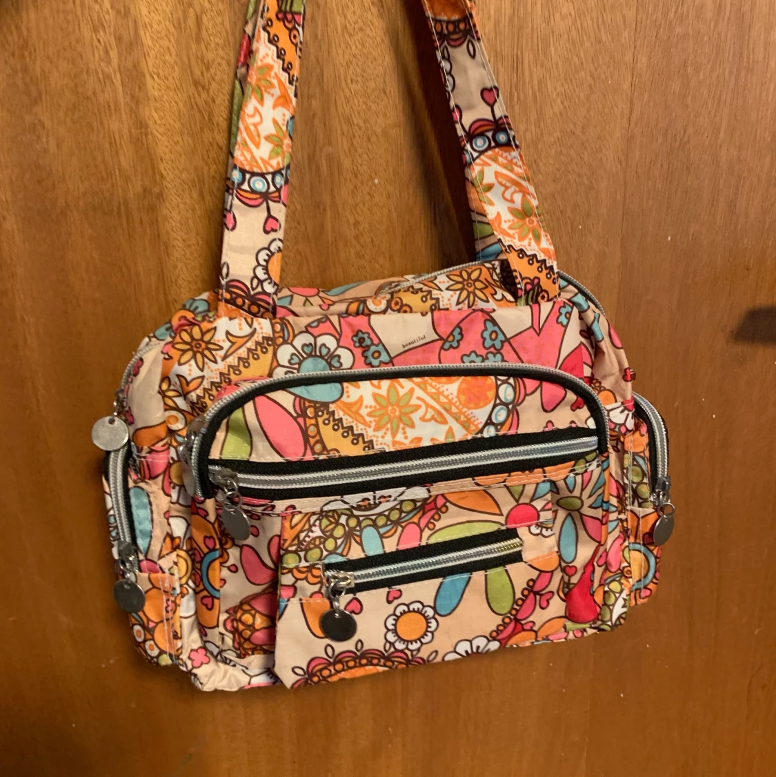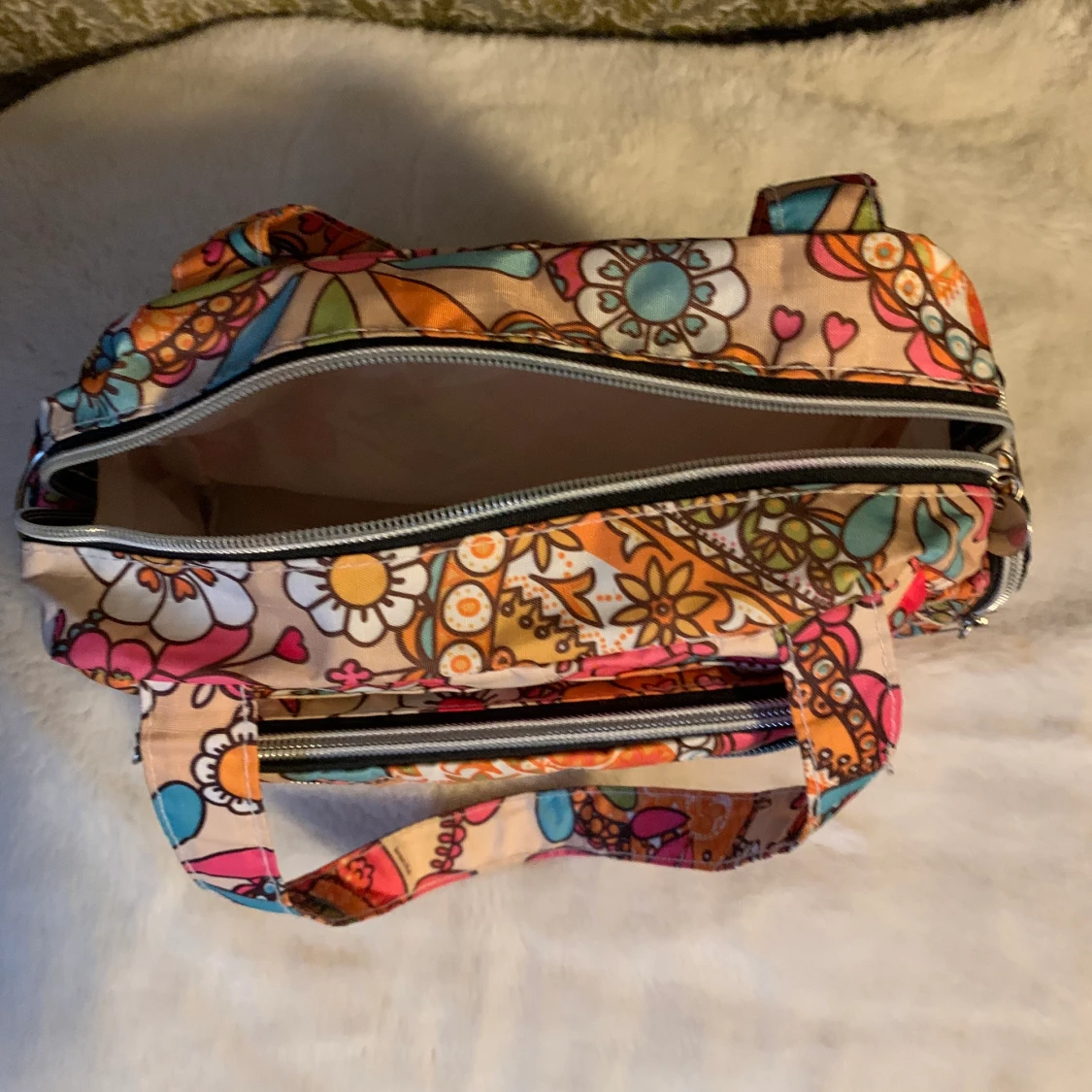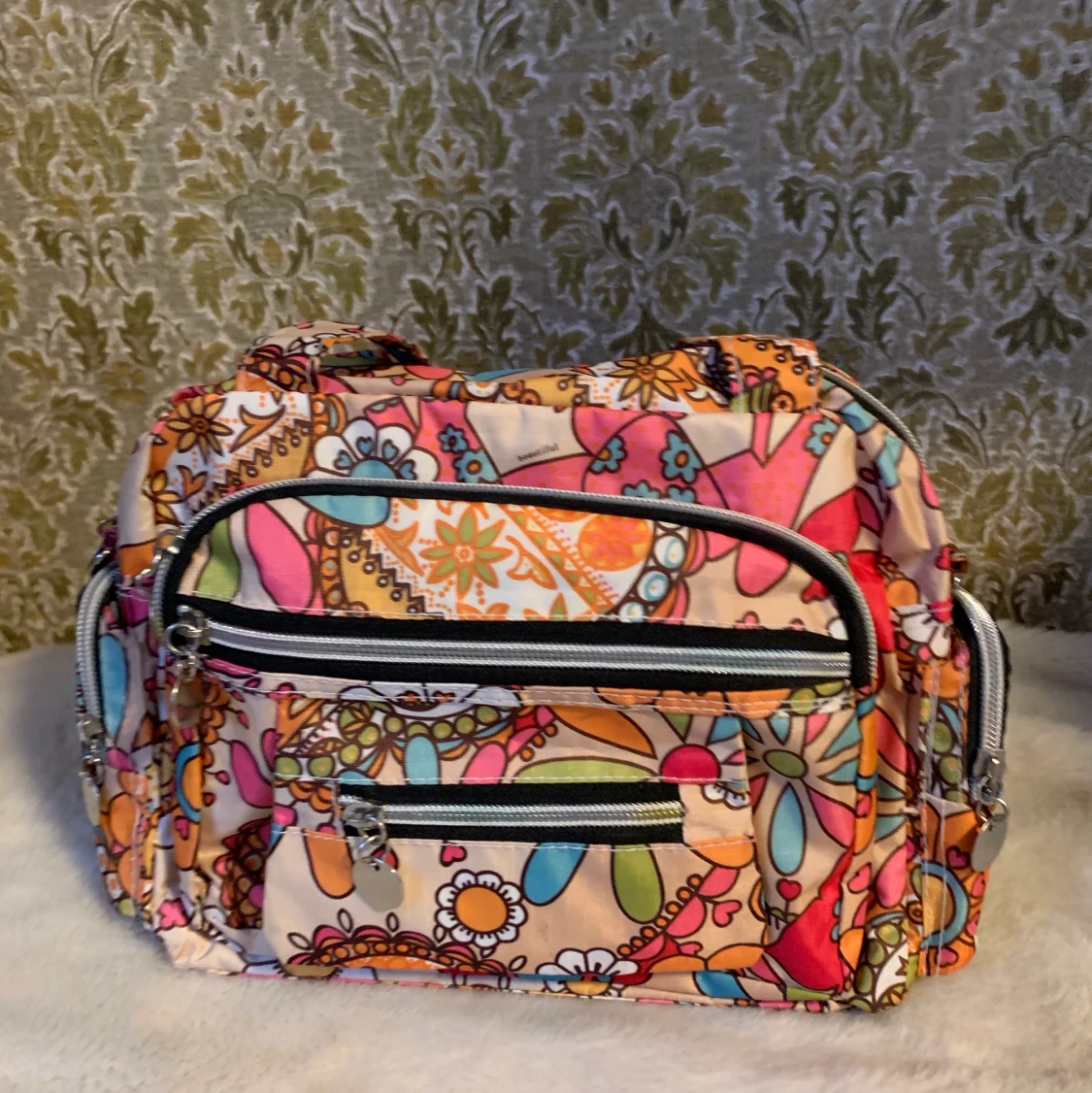 En fin väska som nästan aldrig är andvänd och i superfint skick. Den är ganska liten och har många små fack. Det finns öglor för axelband men inget axelband tyvärr. För övriga frågor är det bara att höra av sig☺️ OBS! Köparen står för frakten!!