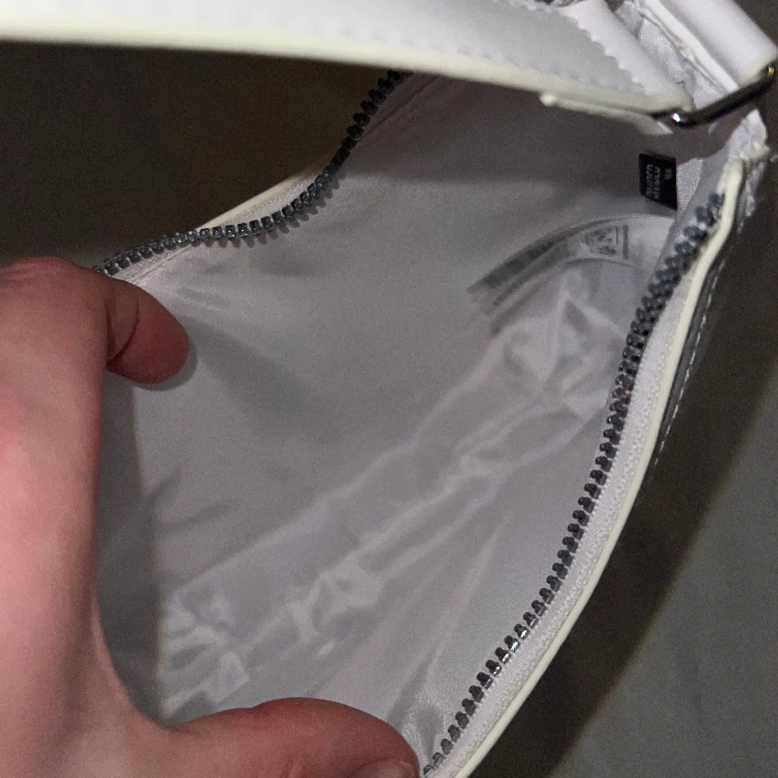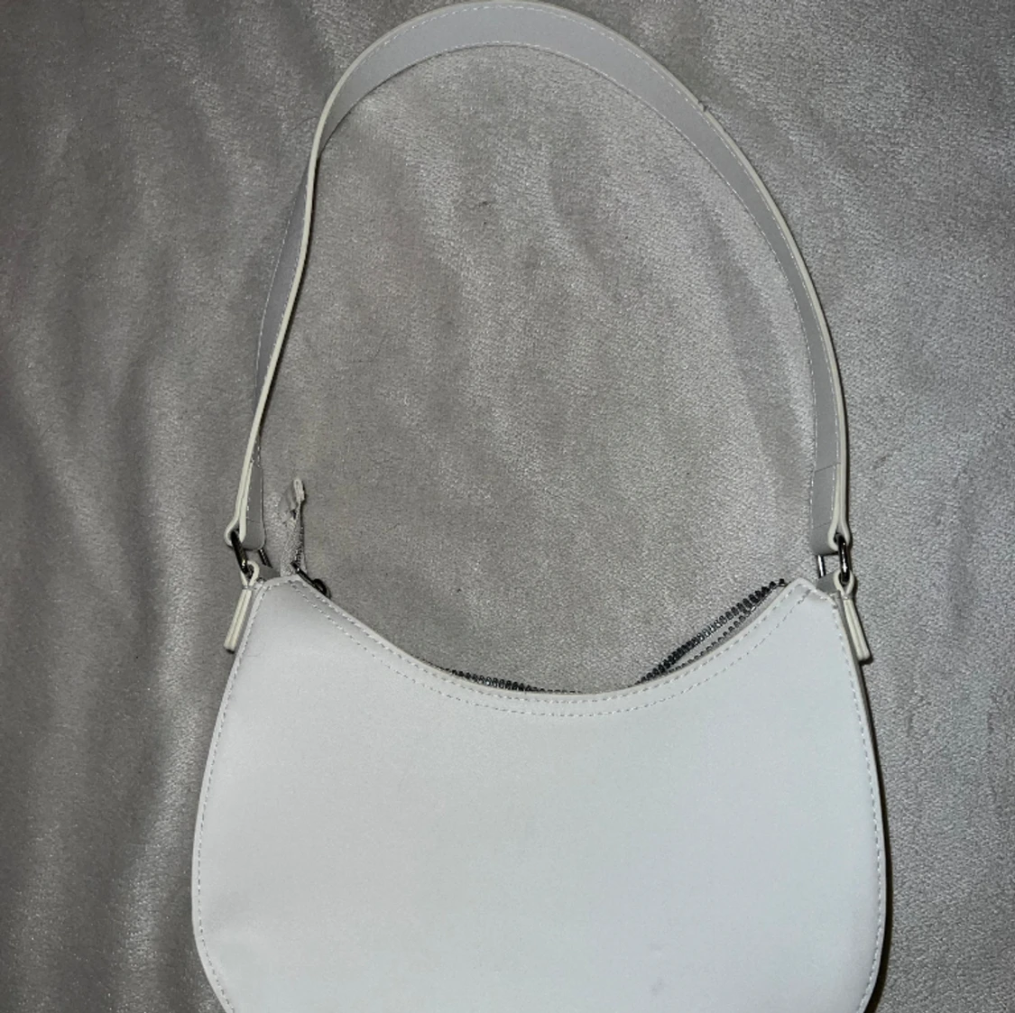 En vit handväska från H&M. Använd en gång. Några ljusgråa fläckar som är ”skav” från mina andra väskor som legat emot..