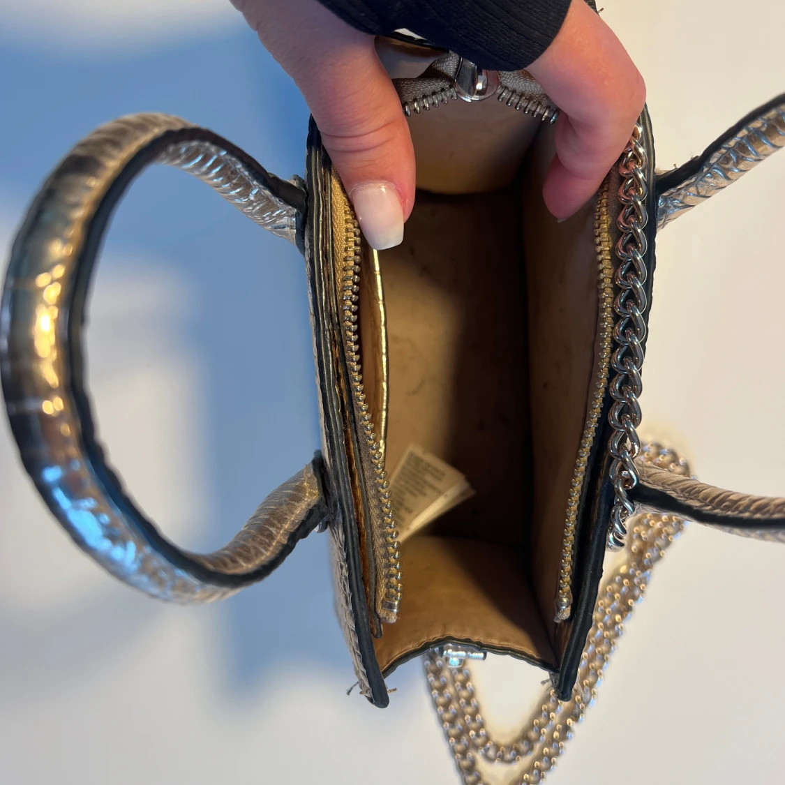 Super snygg fest väska! Inte använd många gånger, lite smutsig på insidan men går att tvätta💕Följer med en längre kedja