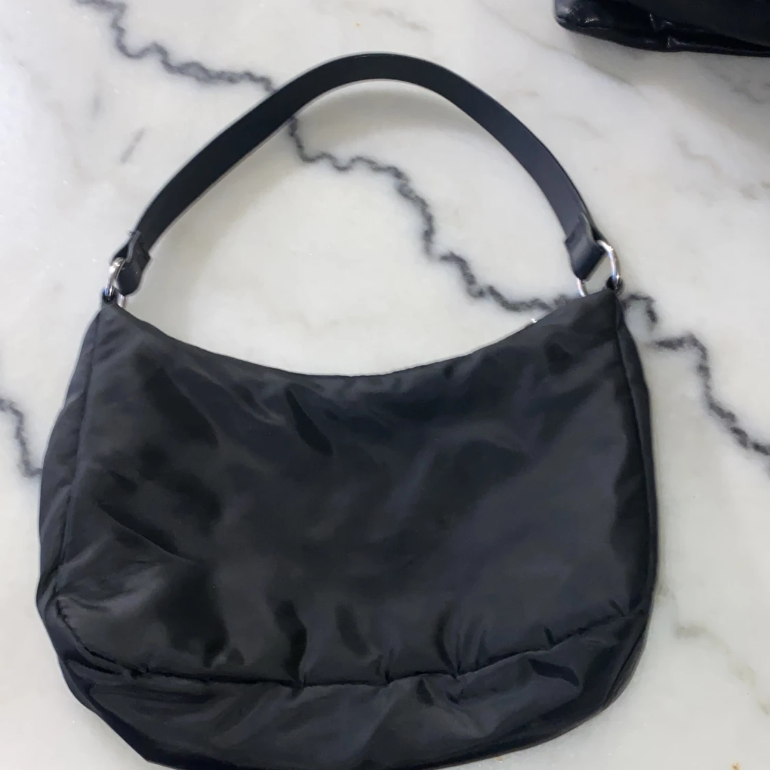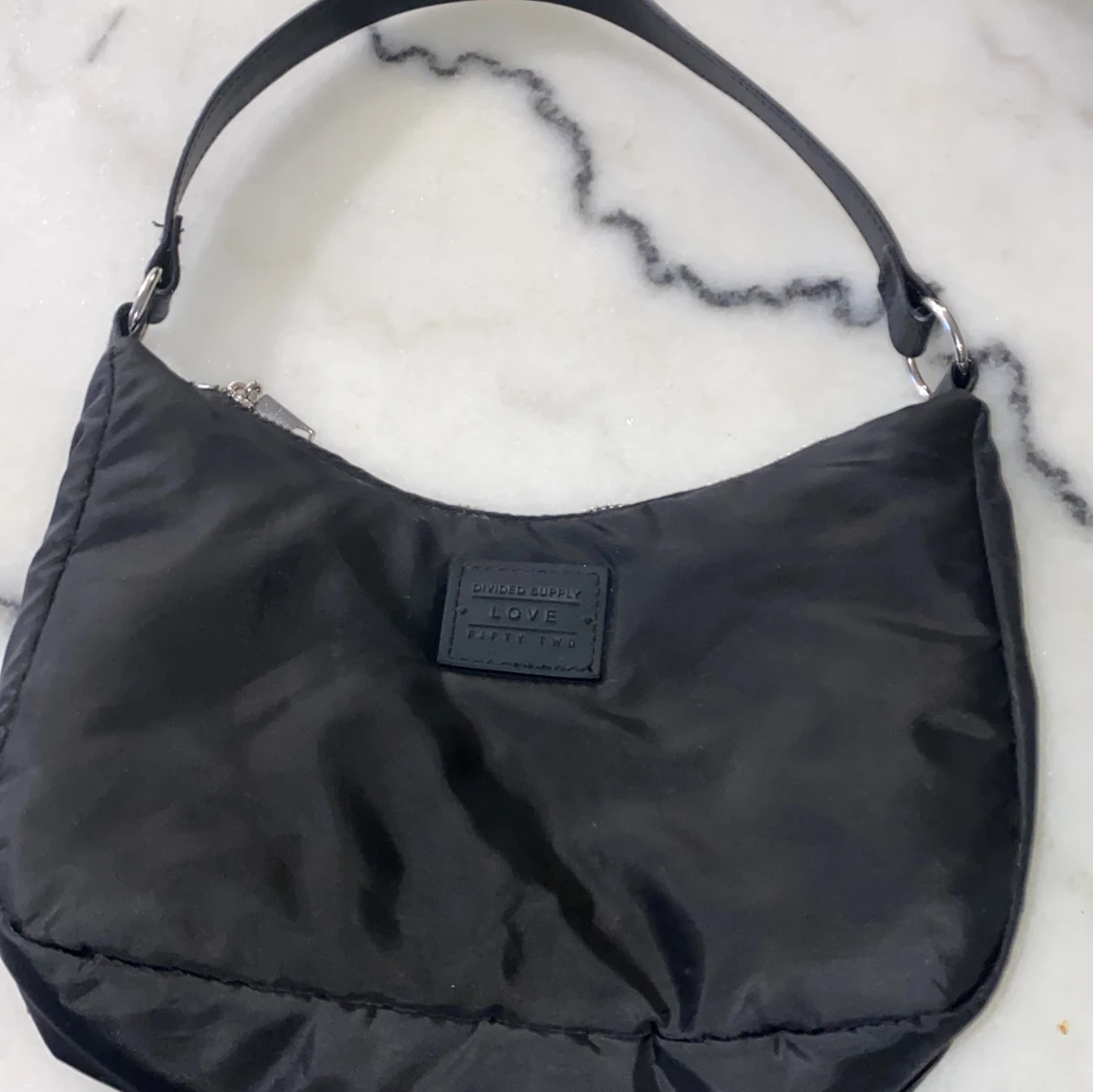 En svart vĂ€ska med tvĂ„ fack InutiđŸ–€
