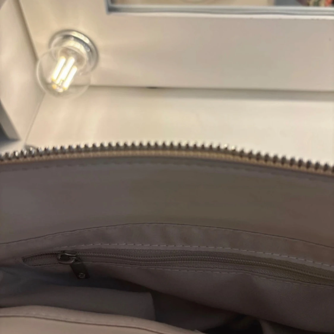 Snygg beige axelväska med både handtag och justerbar axelrem. Väskan har silverfärgade metalldetaljer, dragkedja upptill och en dekorativ låsdetalj framtill. Perfekt storlek för det viktigaste och har innerfack för småsaker.🫶🏻💗