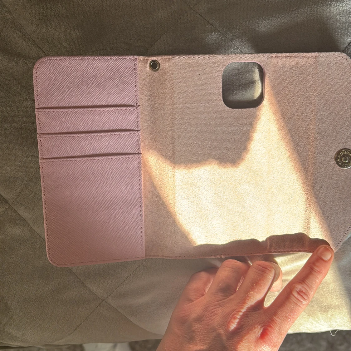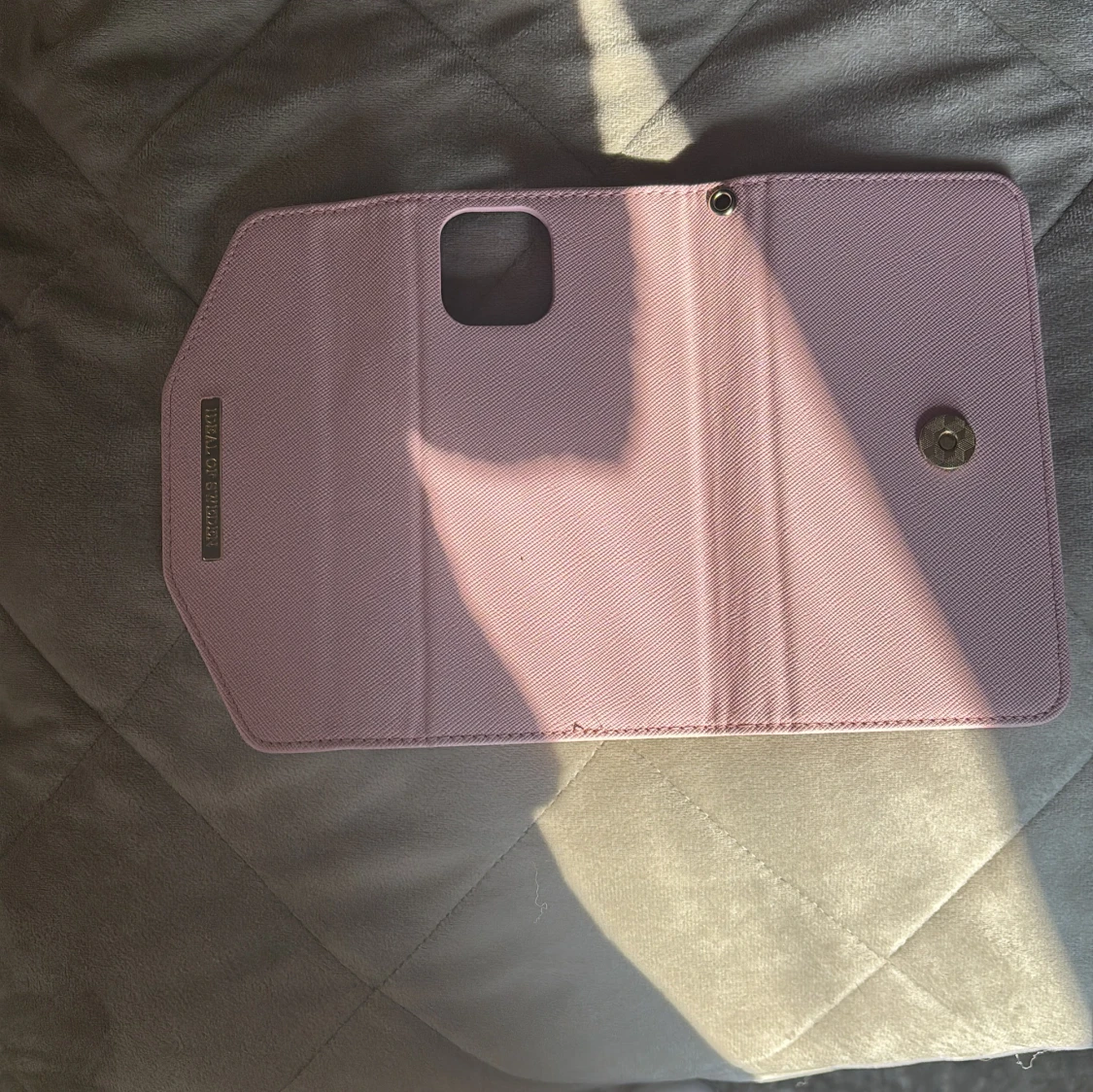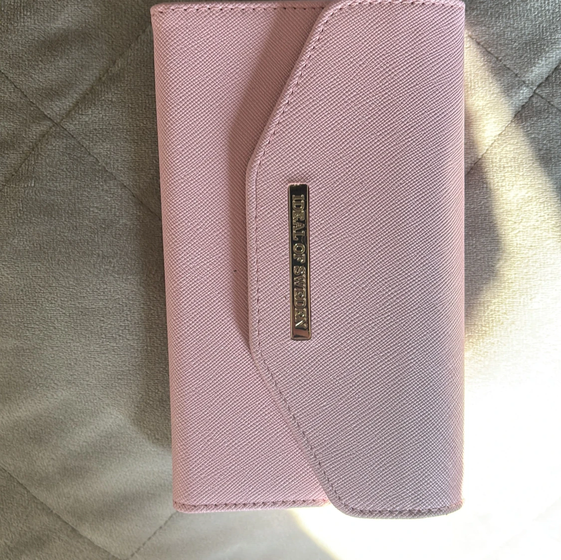 Snygg ljusrosa plånbok från iDeal of Sweden med stilren design och magnetlås. Plånboken har plats för kort och mobil, och är gjord i ett tåligt syntetmaterial med en elegant metallogo på framsidan.