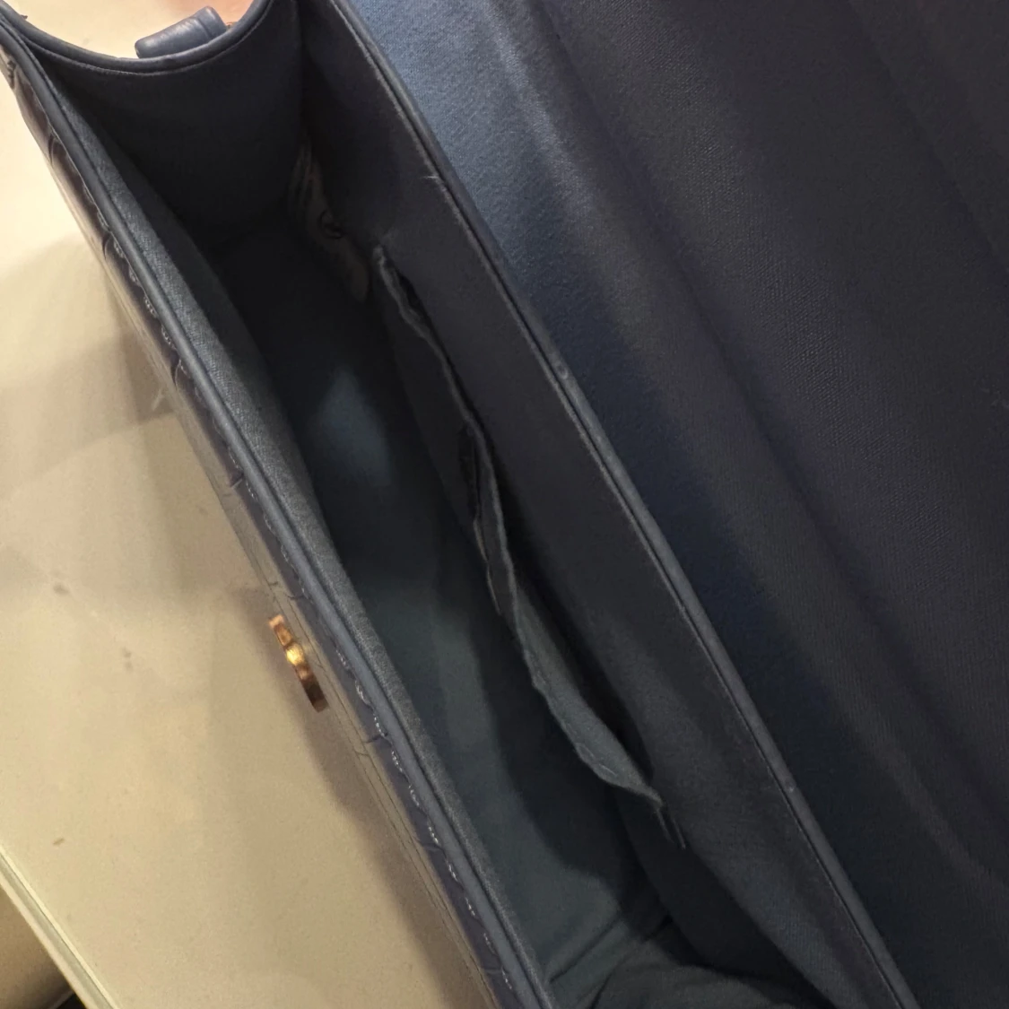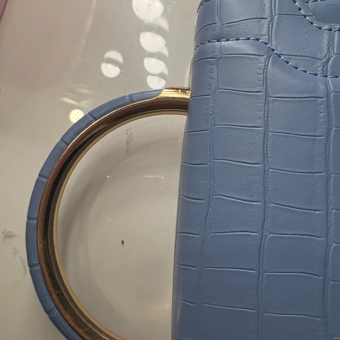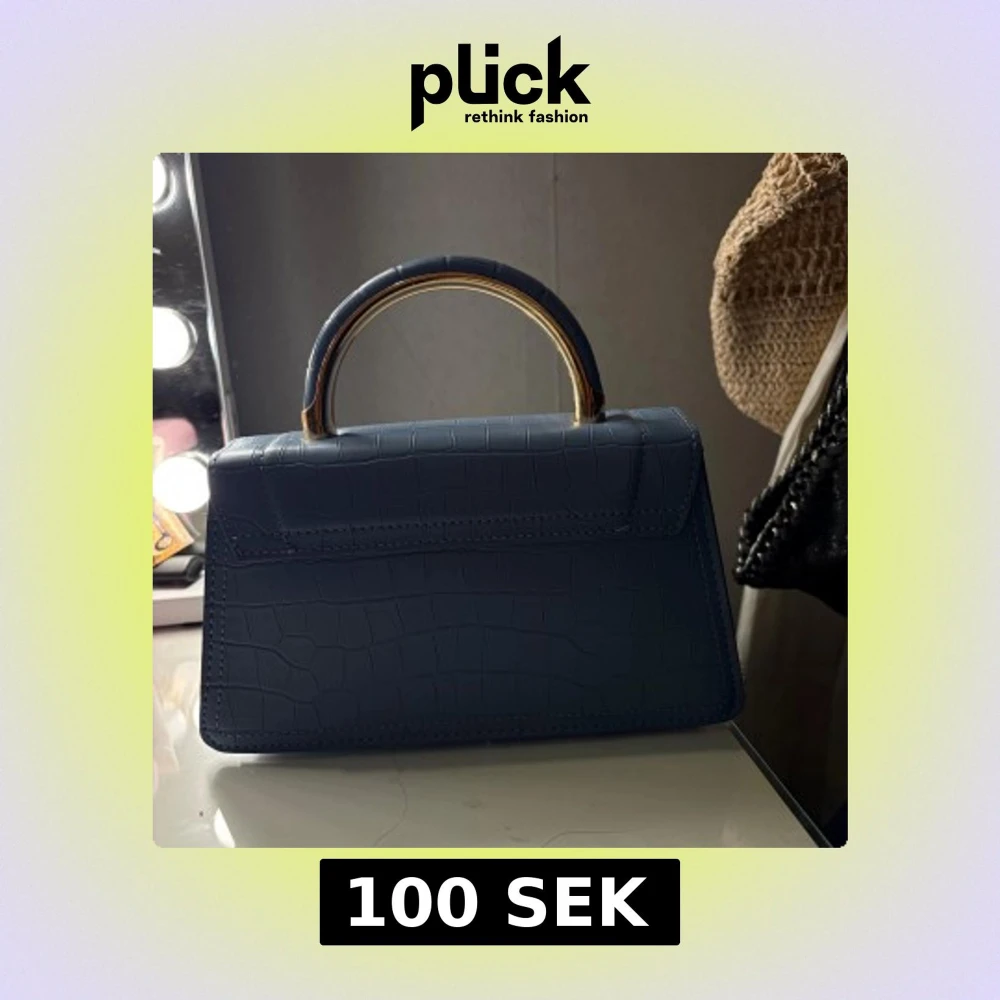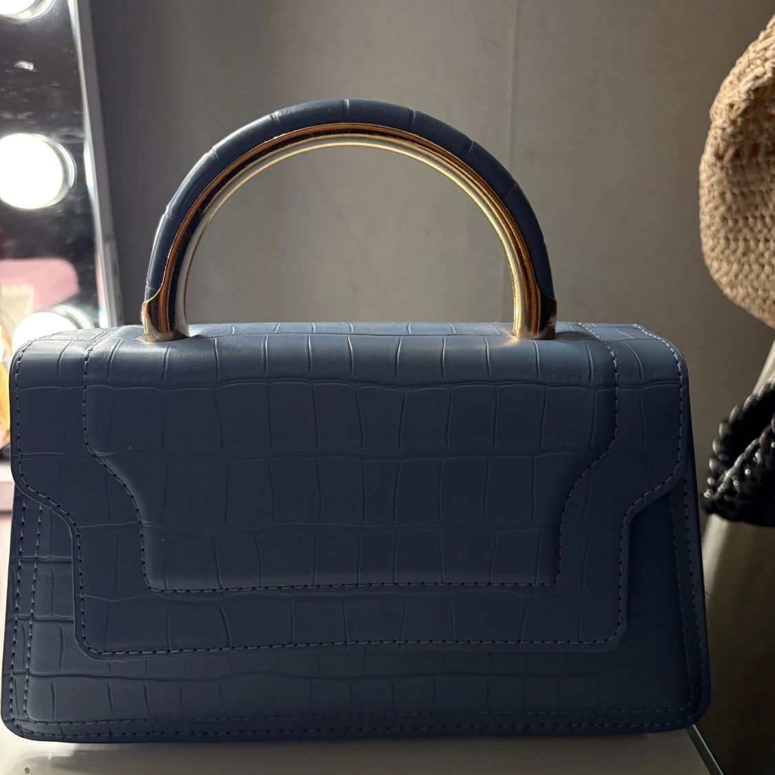 Snygg blå handväska med krokodilmönster och ett elegant handtag i metall. Perfekt för att ge din outfit en stilfull touch. Väskan har en praktisk storlek för att bära dina nödvändigheter.
