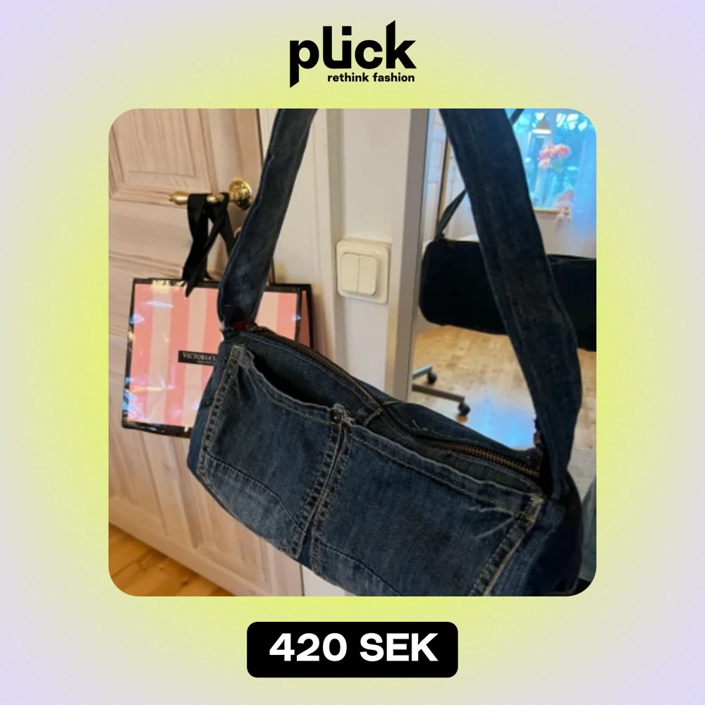 Blå jeansväska med rutigt tyg på insidan!🐬🐬Jag själv har sytt den men har ingen användning av den💖