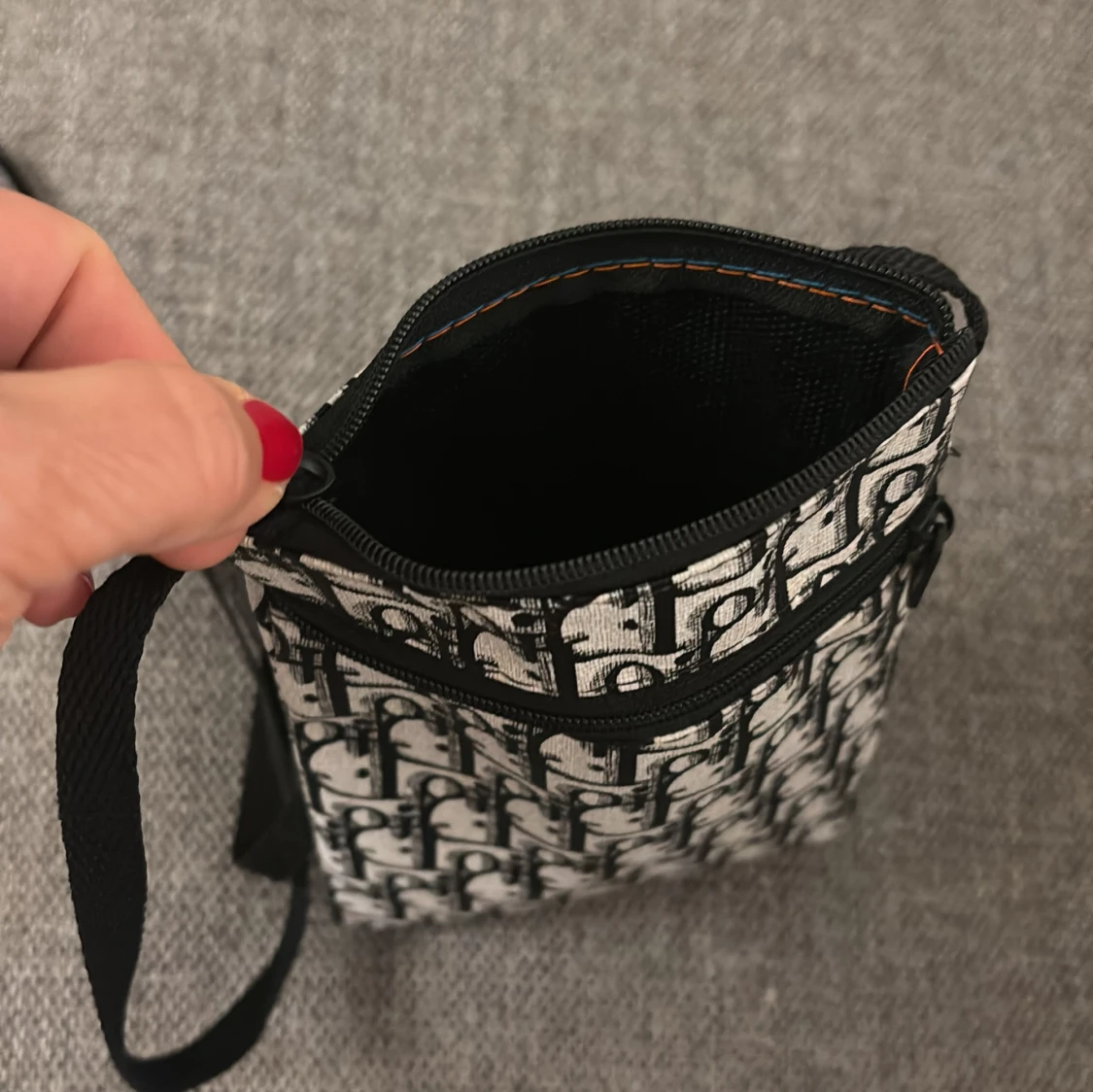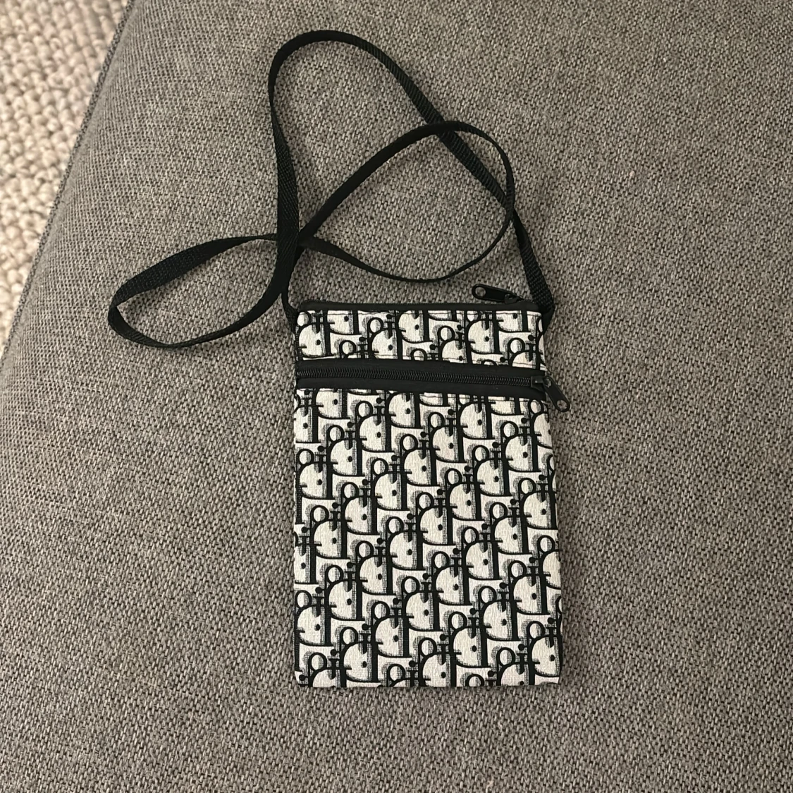 Snygg och praktisk svartvit axelväska med ett unikt mönster. Väskan har en dragkedja upptill och en justerbar axelrem. Perfekt för att bära med sig det viktigaste på ett stilfullt sätt. Passar både mobilen, korthållaren eller de små viktiga prylarna