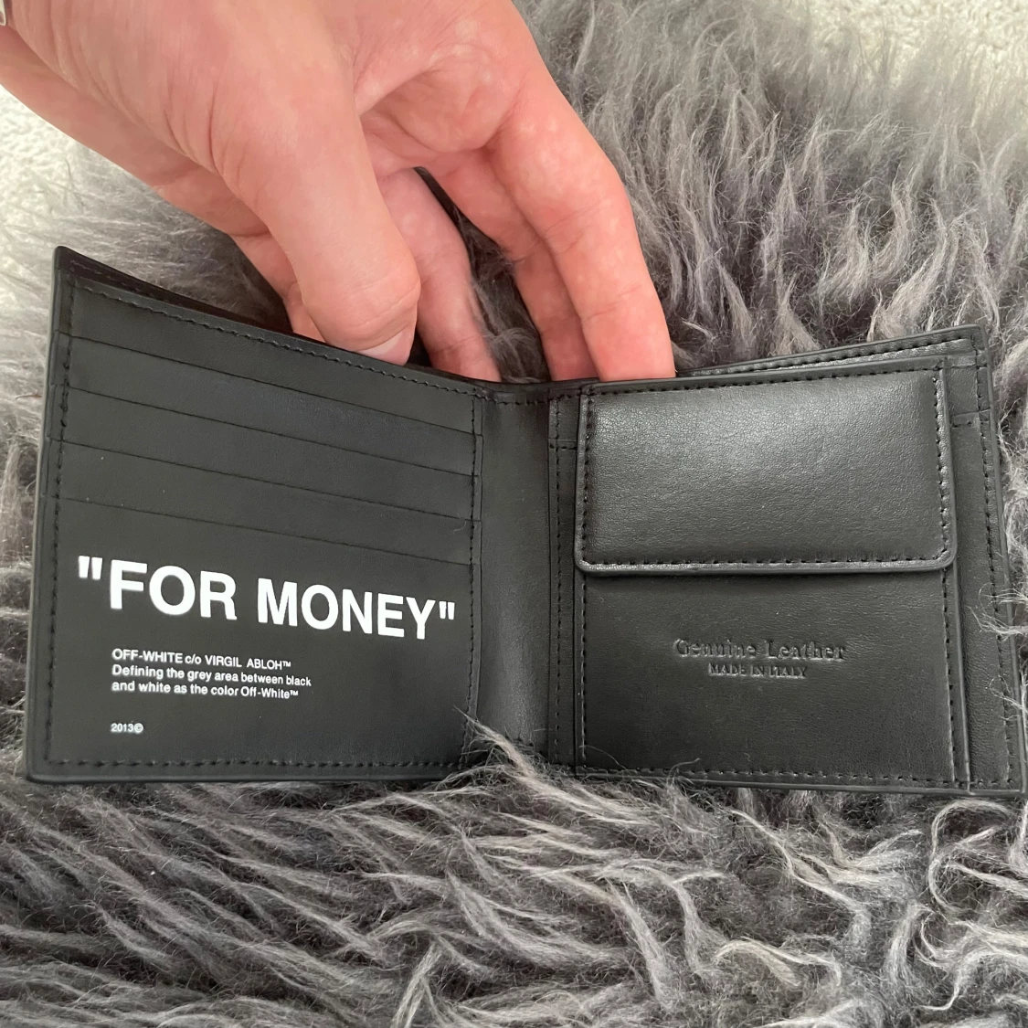 Off-White ”FOR MONEY” plånbok i läder, askön med mycket utrymme. Skriv till mig vid minsta fundering 😁