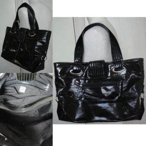 (kan ej skicka fler bilder eller hur den ser ut på). lackad väska, sparsamt använd. mått 40x28x13 cm. fickor innuti och utanpå. möts upp i stockholm eller fraktar ⭐️