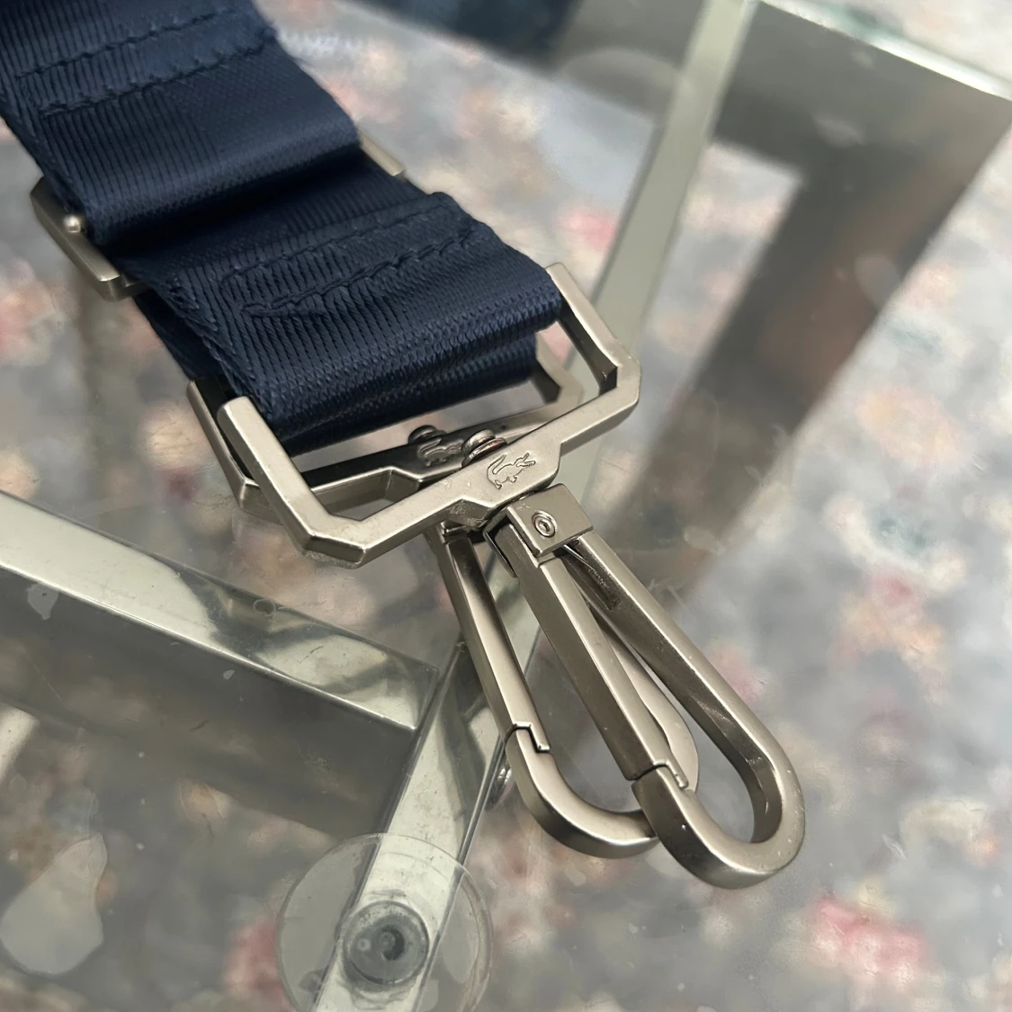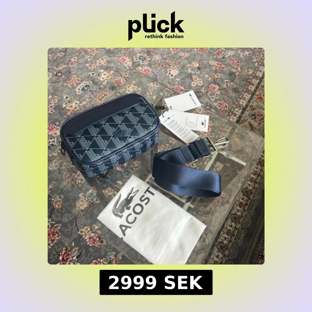 Snygg blå axelväska från Lacoste med geometriskt mönster och präglad logga framtill. Väskan har justerbar axelrem, dragkedja och detaljer i skinnimitation. Perfekt storlek för det viktigaste och en stilren look.