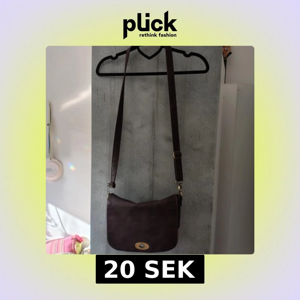 mörkbrun axelväska i skinn, ena remmen är temporärt lagad med ett gem. PM för frågor å fler bilder