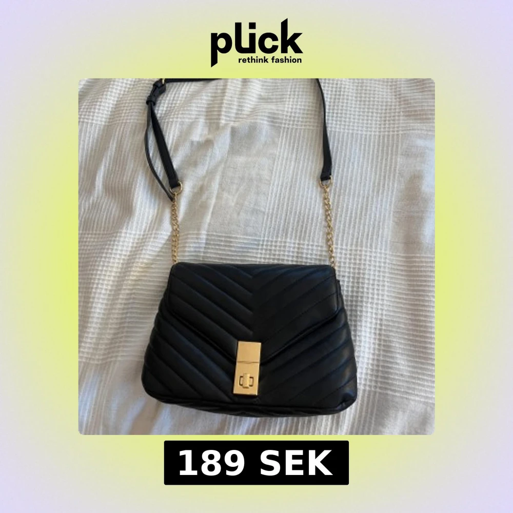 Snygg svart axelväska i quiltat mönster med guldfärgad kedja och låsdetalj. Väskan har en justerbar axelrem och flera fack med dragkedja inuti för praktisk förvaring. Mycket rymlig väska med 4 fack. ❤️