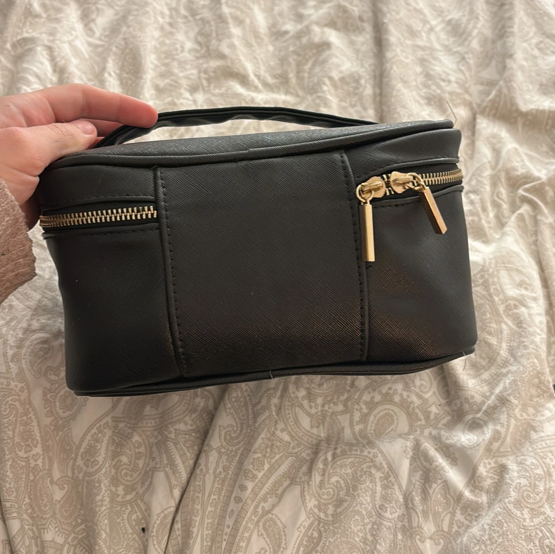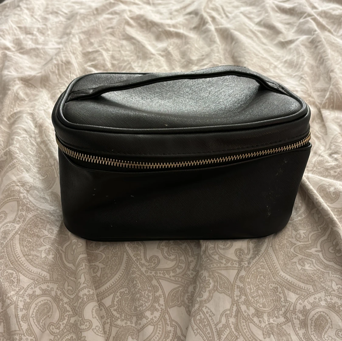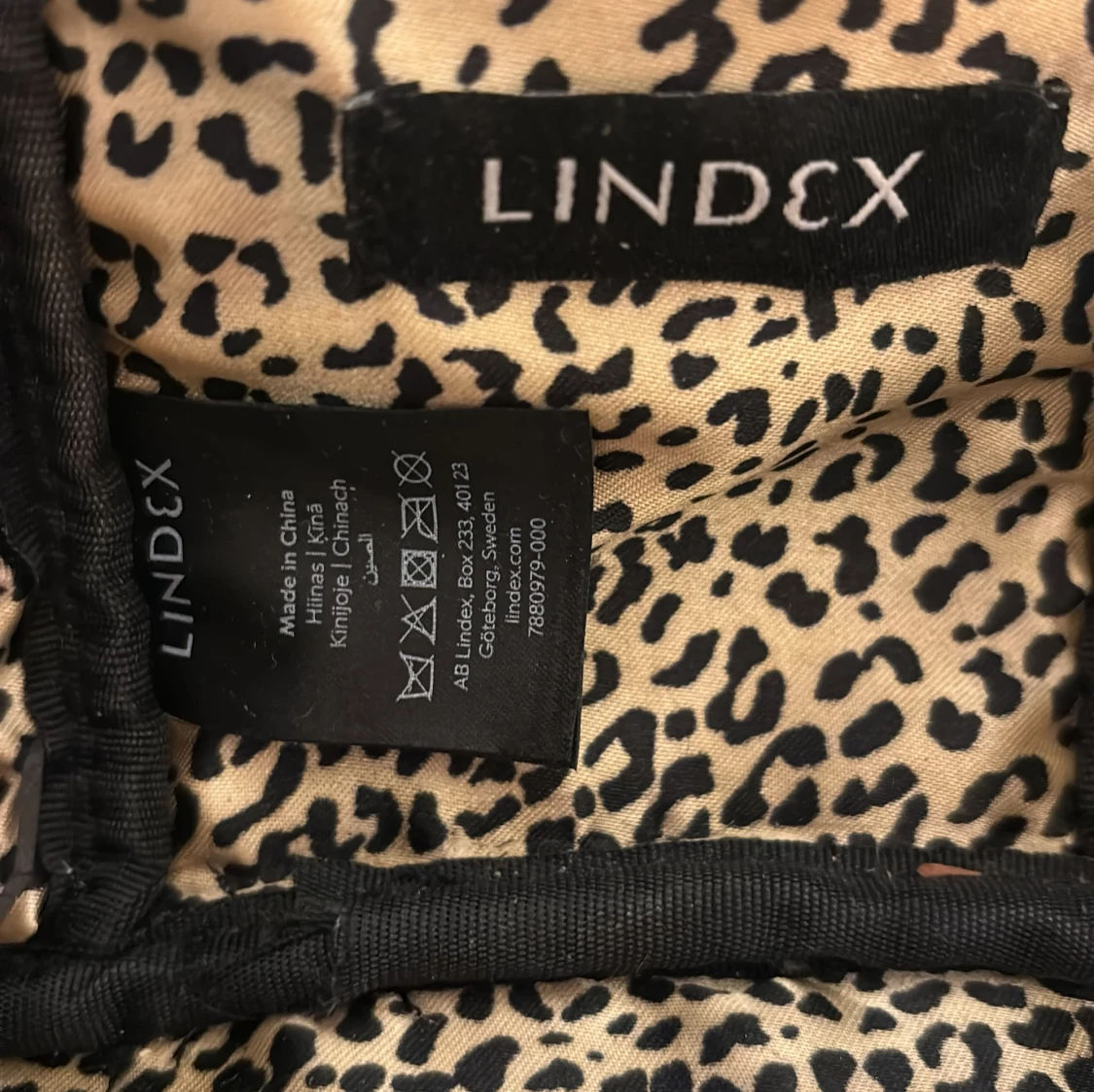 Säljer en stilren svart necessär från Lindex i syntetmaterial. Den har en praktisk dragkedja och ett coolt leopardmönstrat foder. Perfekt för att hålla ordning på dina saker när du reser eller bara hemma. 💕