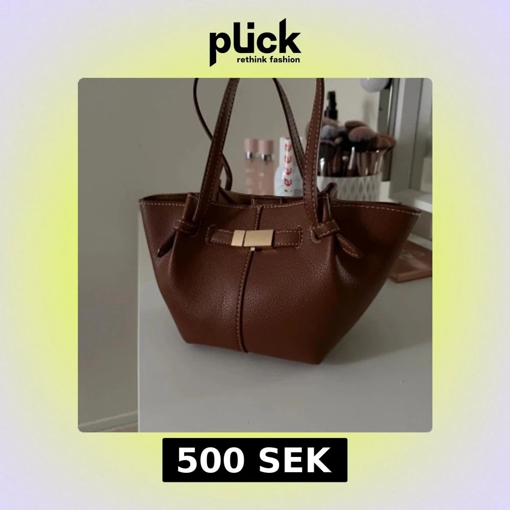Snygg brun handväska i skinnimitation med två handtag och en elegant guldfärgad detalj framtill. Väskan har en stilren form och är perfekt för att bära dina viktigaste saker. Insidan är rymlig och stängs med magnetknapp. Passar till många olika outfits.