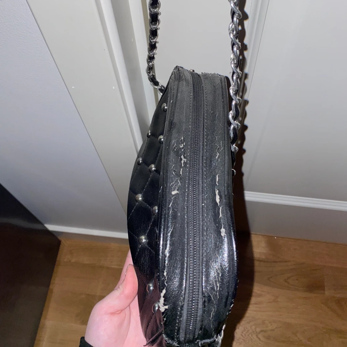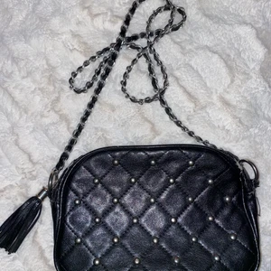 Väska från Lindex som inte säljs längre, endast nitar på ena sidan av väskan! Lite sprucken i materialet vid dragkedjan (bild 3) men inget man tänker på! Pris + 45kr frakt, hör av er vid frågor! 🦋