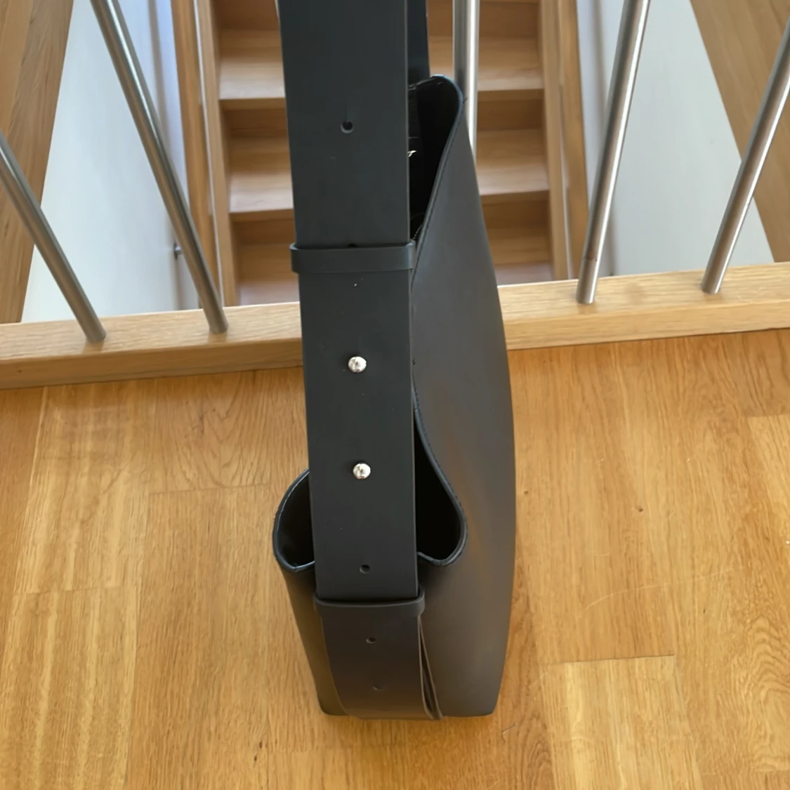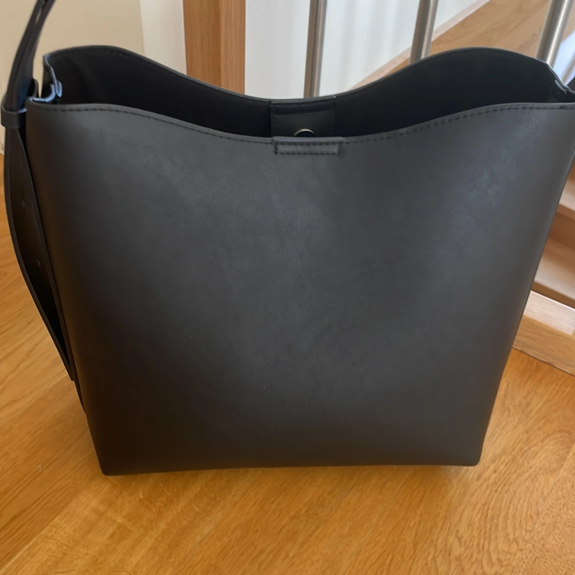 Stilren svart axelväska med justerbar rem. Väskan har en rymlig insida med fack och dragkedja, perfekt för att få plats med allt du behöver. Enkel design som passar till många olika outfits. Säljer eftersom jag råkade köpa två.