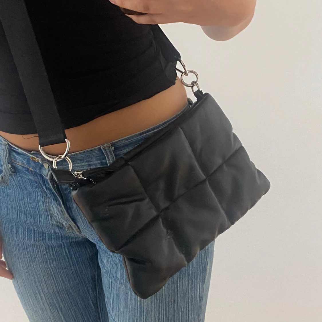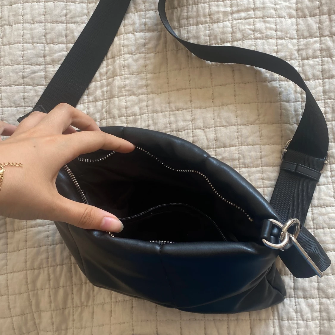 Basic snygg svart väska med justerbart axelband med lite silverdetaljer