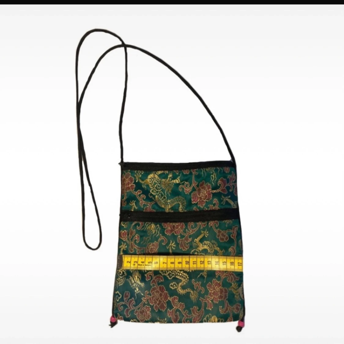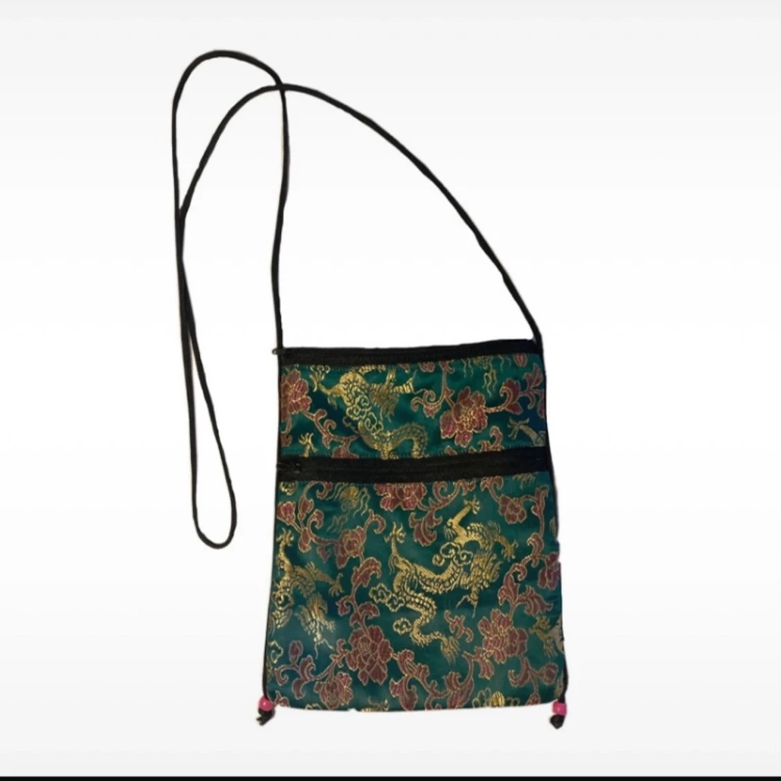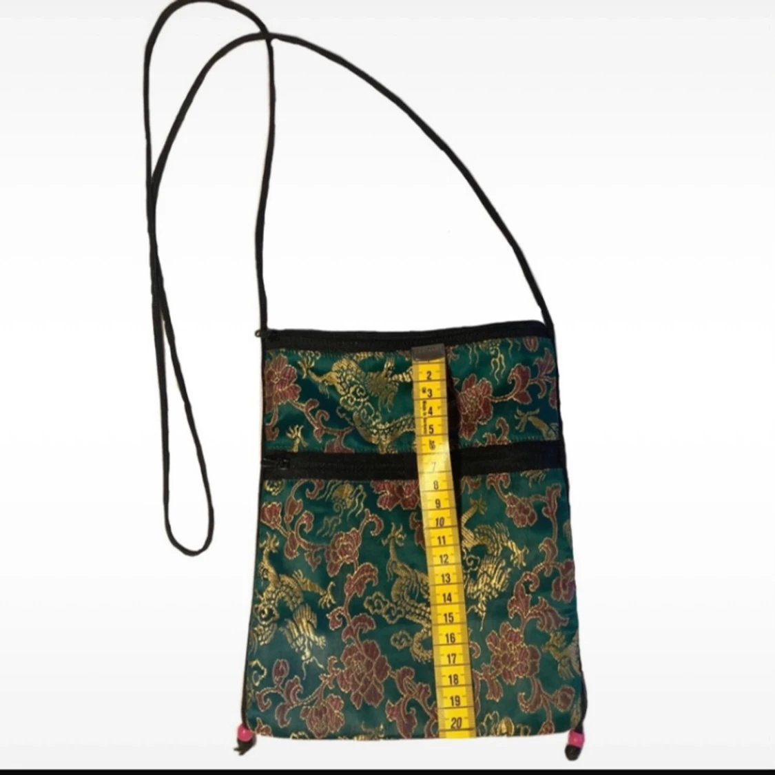 Söt liten axelremsväska i fint siden-liknande tyg.