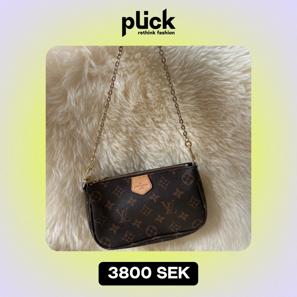 Säljer en snygg brun axelväska från Louis Vuitton med det klassiska monogrammönstret. Väskan har en guldfärgad kedja och en dragkedja upptill. Perfekt för både vardag och fest! 👜✨