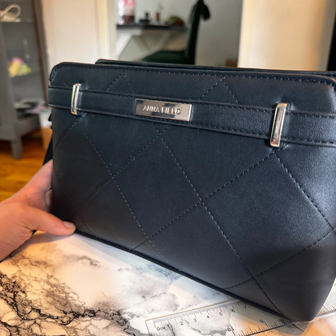 Säljer en snygg svart axelväska från Anna Field. Väskan är quiltad och har en elegant design med silverdetaljer. Perfekt för både vardag och fest! 🖤