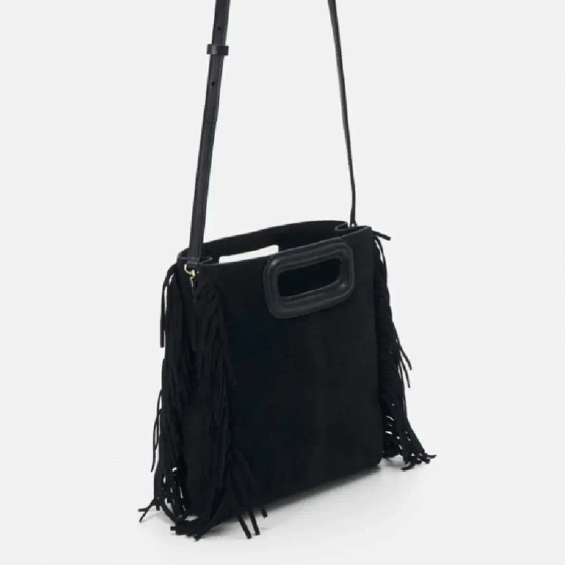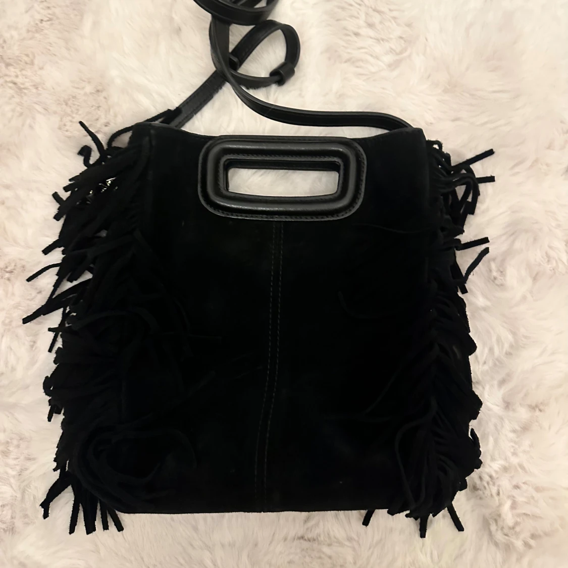 Maje väska svart mocka tyg, mycket bra skick inga fläckar eller defekter, köpt ny från Zalando, storlek M
