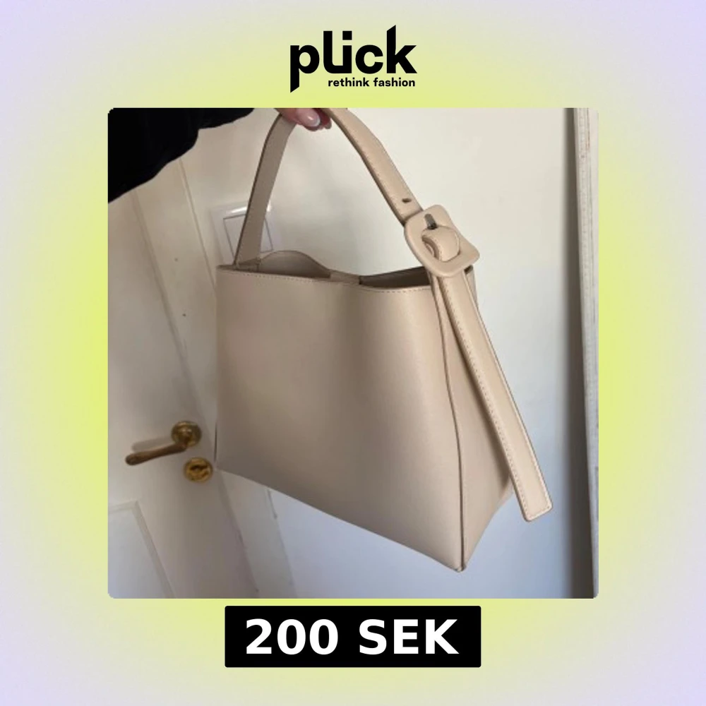 Stilren beige axelväska med både handtag och justerbart axelband. Endast använt två gånger. Väskan har en enkel design med en dekorativ knutdetalj på sidan och ett innerfack med dragkedja. Perfekt för att bära det viktigaste i vardagen.