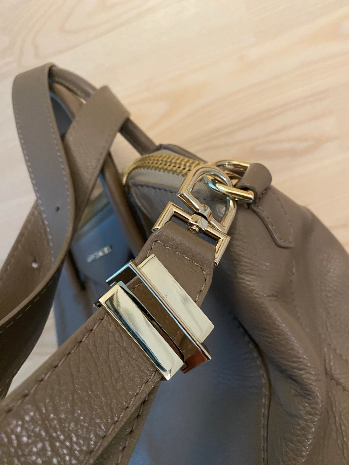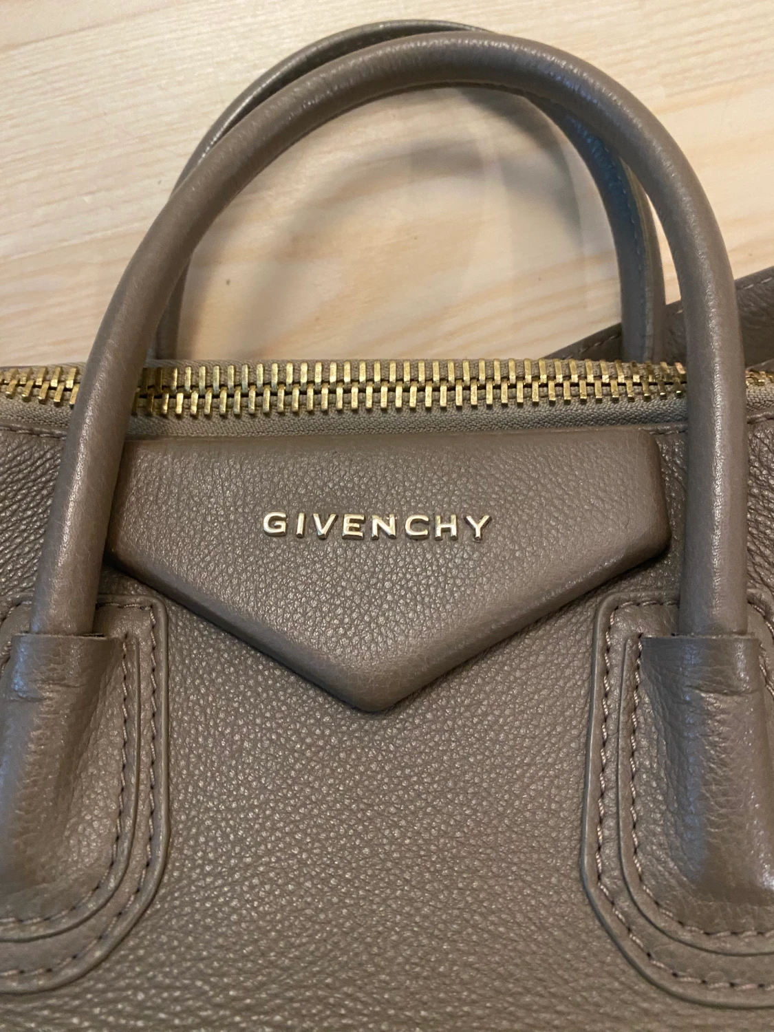 Säljer nu min Givenchy väska. beige/brun med gulddetaljer. Använd och vikt ihop sig då jag har haft den i garderoben, därav pris. Har heller tyvärr inget kvitto eller dylikt för att stärka äkthet. Därav billigt pris. Annars hel och ren.