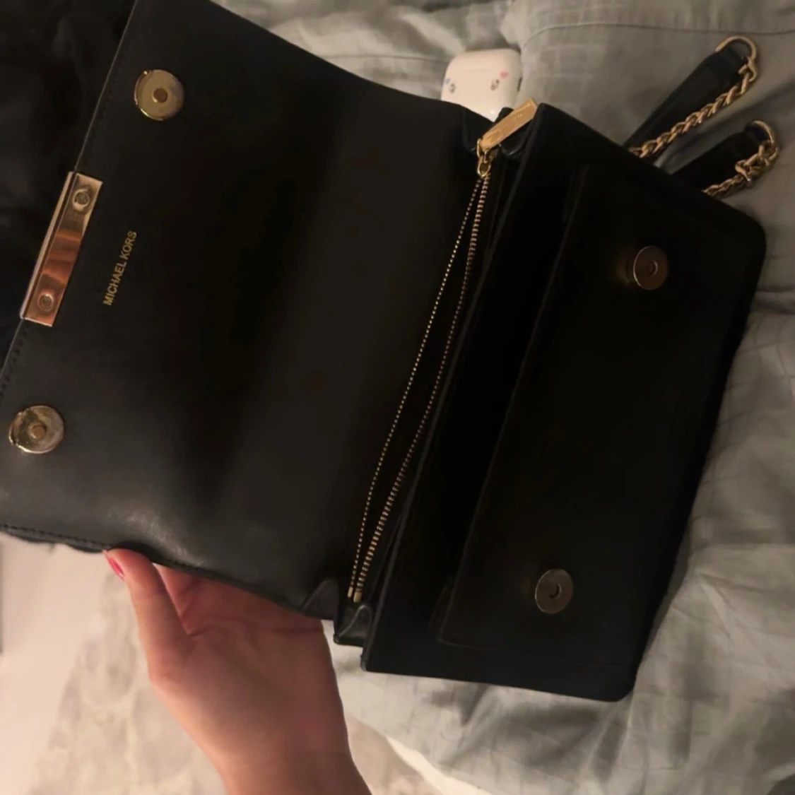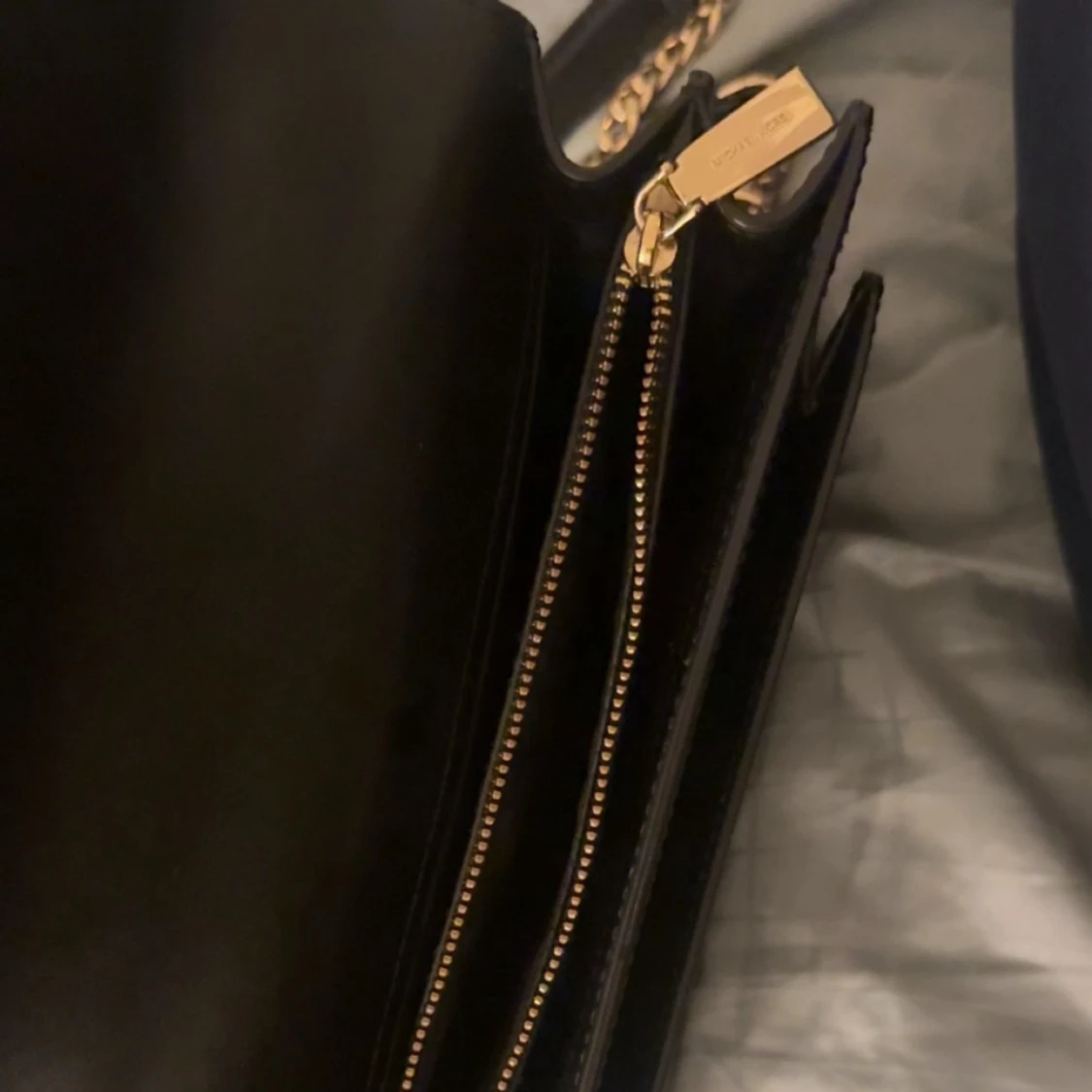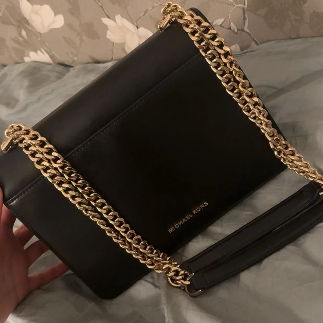 Snygg svart axelväska från Michael Kors i slätt skinn med guldfärgade kedjor och detaljer. Säljer för 1500kr men priset kan diskuteras 🤍