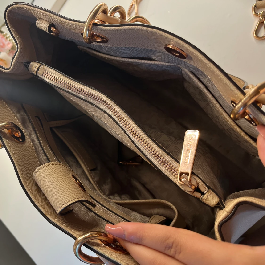 Äkta MK väska i bra skick, finns dock enstaka skrapor och nån fäck men syns knappast. Mer bilder kan skickas vid intresse. Nypris: ca 4300kr