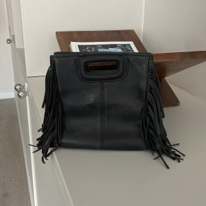 Säljer min svarta mini maje väska i svart läder, den är inte i nyskick men inte heller förstörd. Du får med ett svart läderband samt en kedja från maje. Väskan ursprungliga pris är runt 2500kr + kedjan som kostar runt 1000kr! Har tyvärr inget kvitto❤️