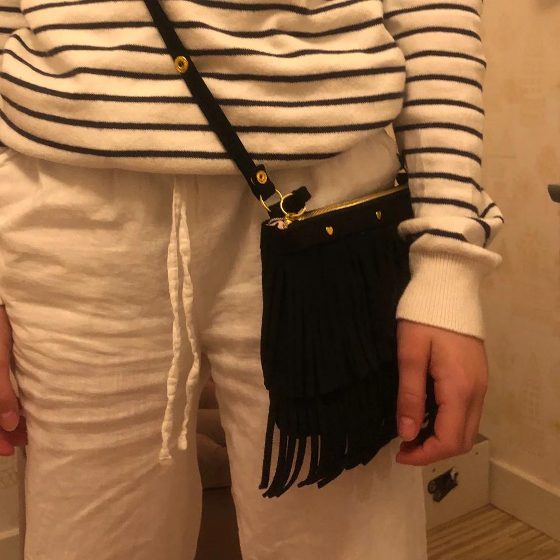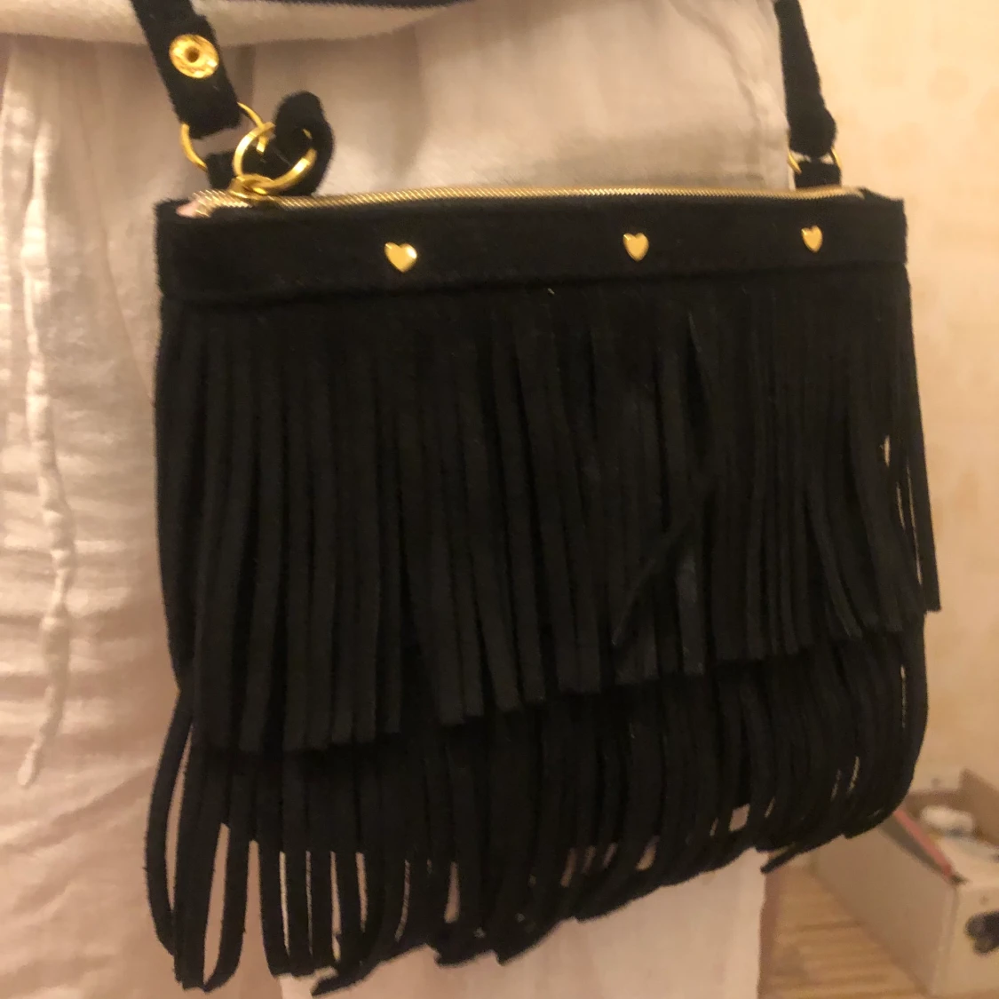 Säljer min jätte fina väska i mocka med fransar som är väldigt lik maje väskorna! Säljer då jag fått en ny väska, kan skicka mer bilder! Hör av er vid intresse💖💖