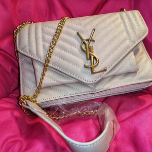 23 cm lång och 17 cm hög. Helt ny. Ej äkta vit med gulddetaljer
