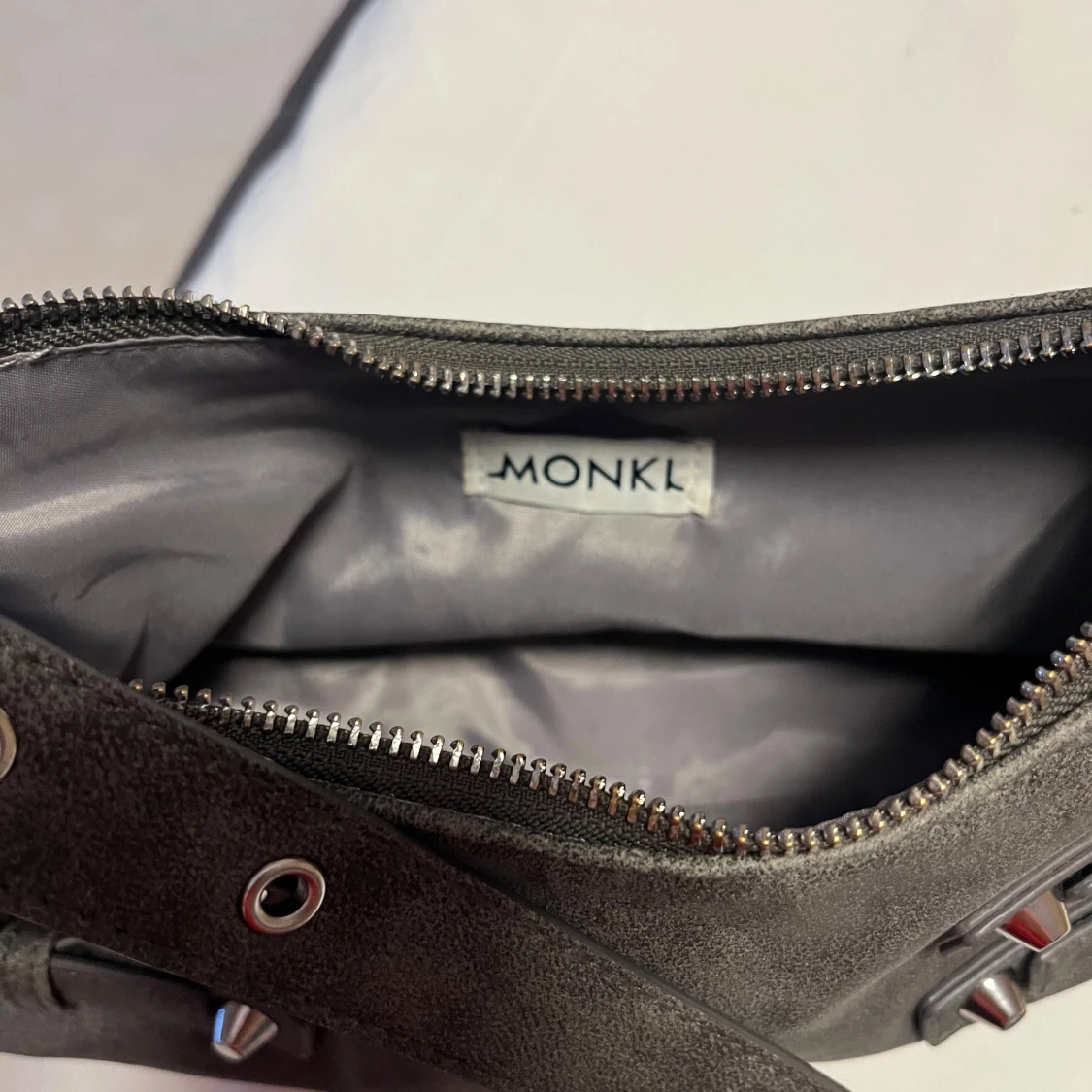 Väska från monki med coola detaljer. Säljer pga används ej längre, skicket på väskan är 8/10. Nypris var 299 kr säljs för 95 kr.