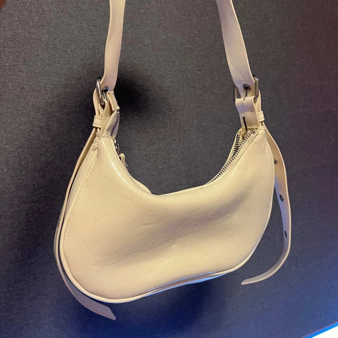 Monki väska med coola detaljer, använd en del. Köptes för 379 kr säljer för 90 kr!