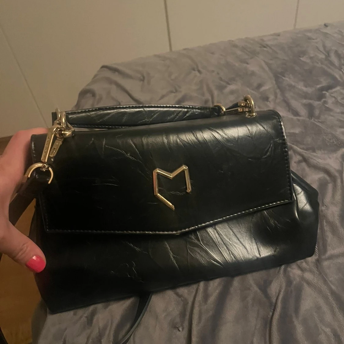 Snygg svart axelväska från Morris, köpt i italien, och ett stilrent M-emblem framtill. Väskan har ett handtag upptill och avtagbar axelrem, perfekt för att bära på olika sätt. Klassisk design som lyfter varje outfit.