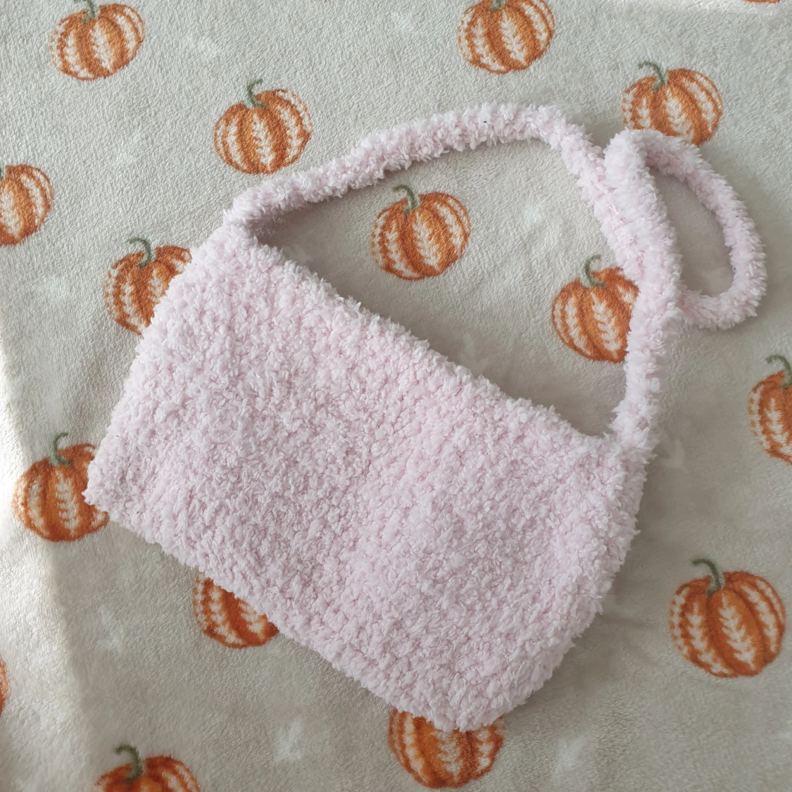 Säljer en supermysig fluffig virkad rosa axelväska. Väskan har en enkel design med öppning, baguette-formad i y2k stil. Perfekt för höst och vardag! 🌷