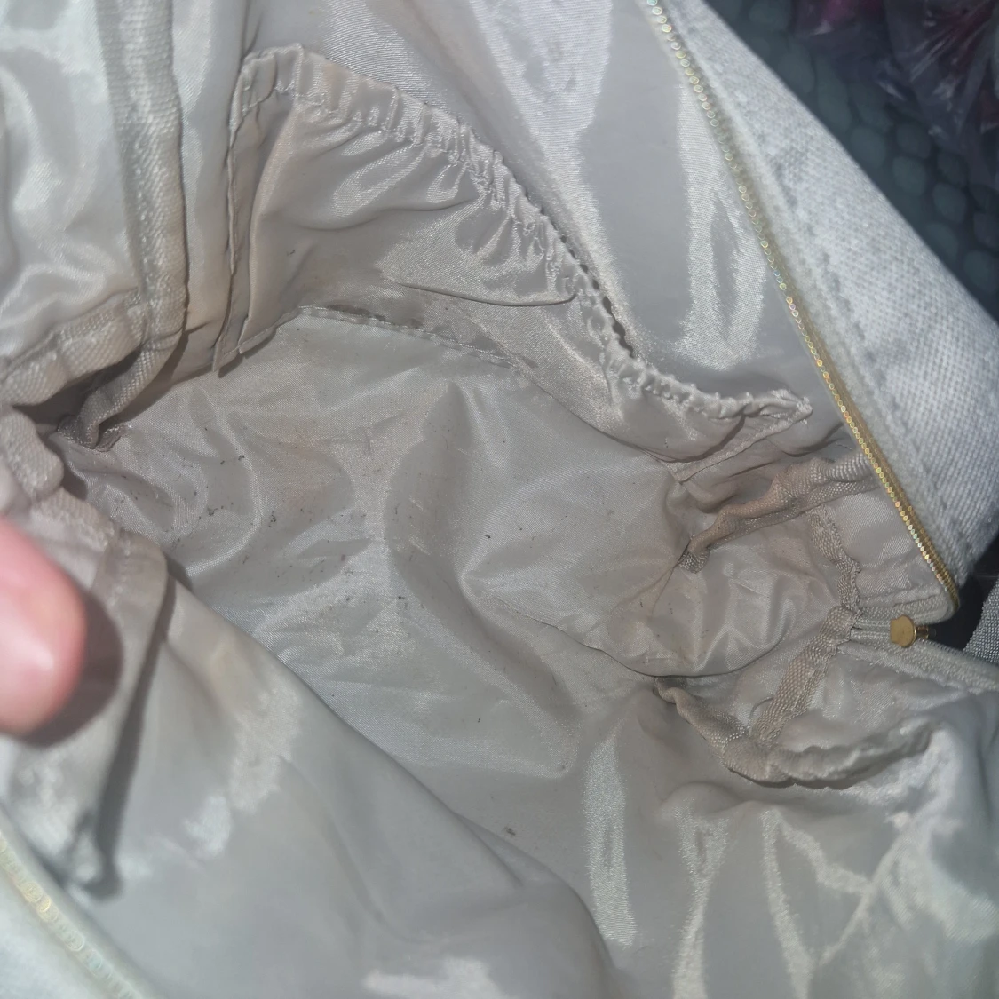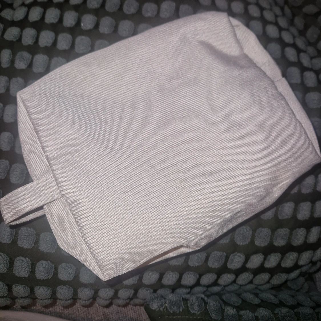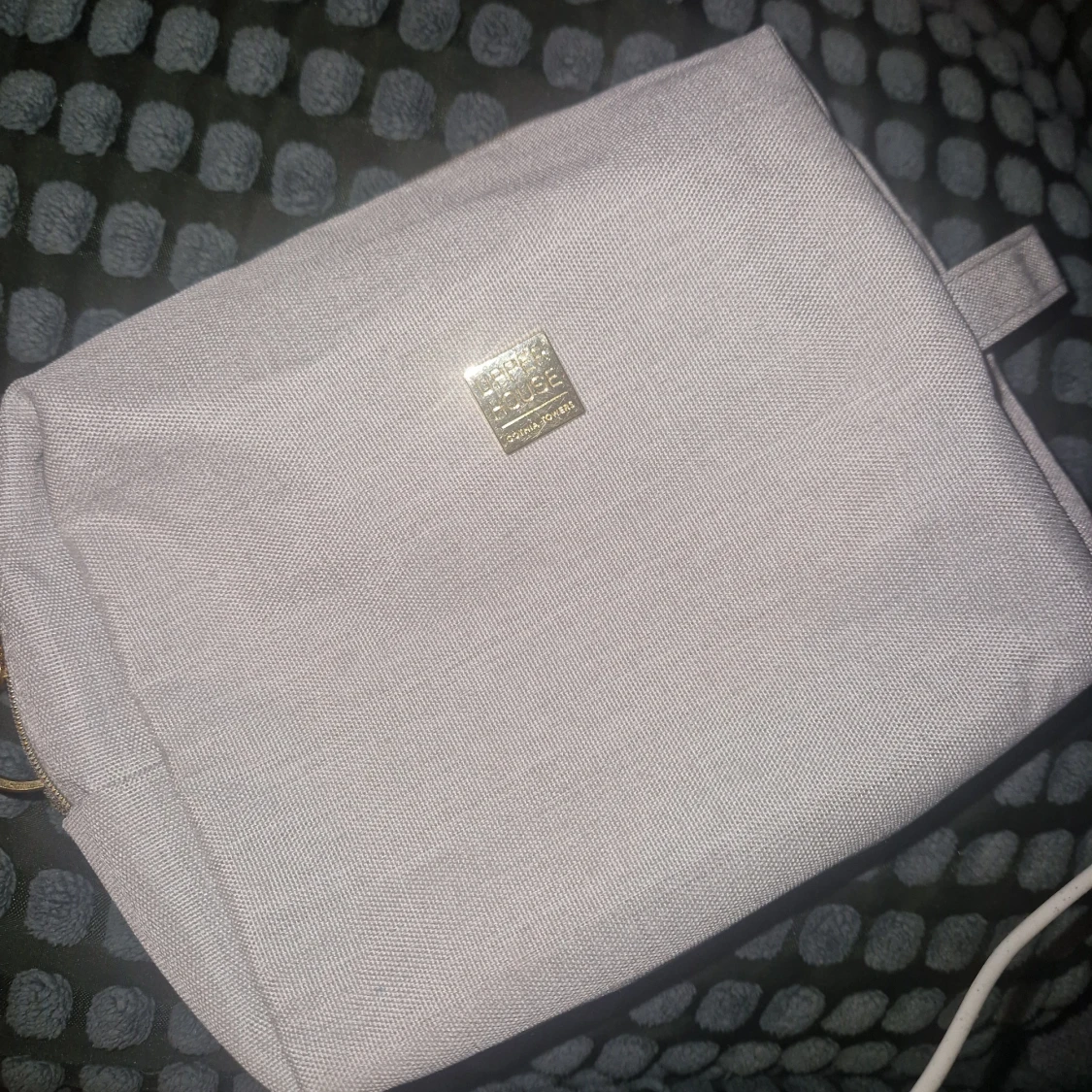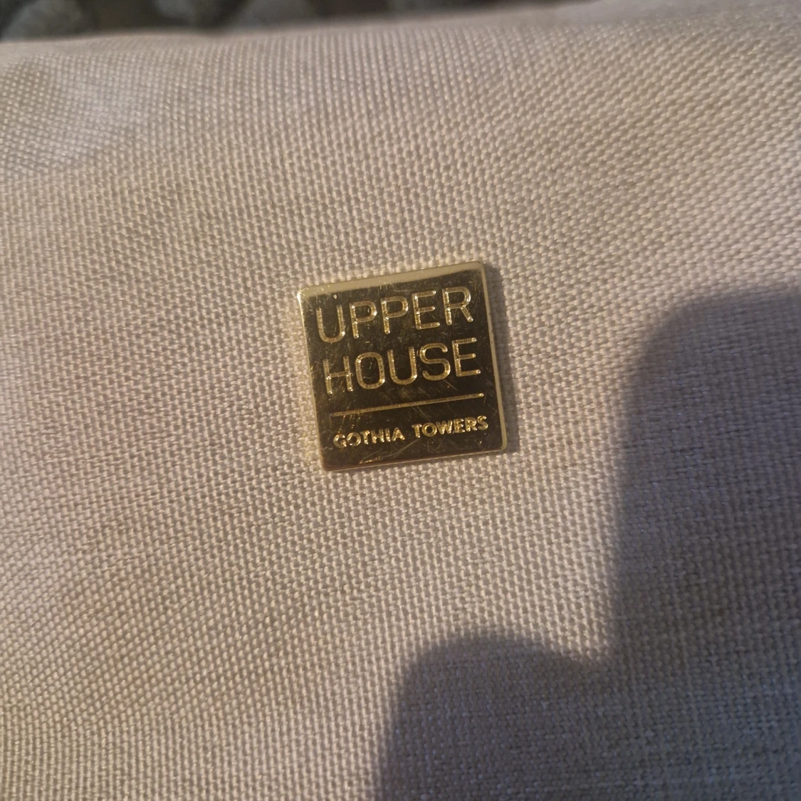 Stilren beige necessär från Upper House Gothia Towers. Tillverkad i tåligt tyg med guldfärgad logga framtill och dragkedja upptill. Insidan har flera praktiska fack och är fodrad i glansigt material. Perfekt för att organisera dina småsaker. Finns tecken på användning på insidan, men fyller sin funktion.