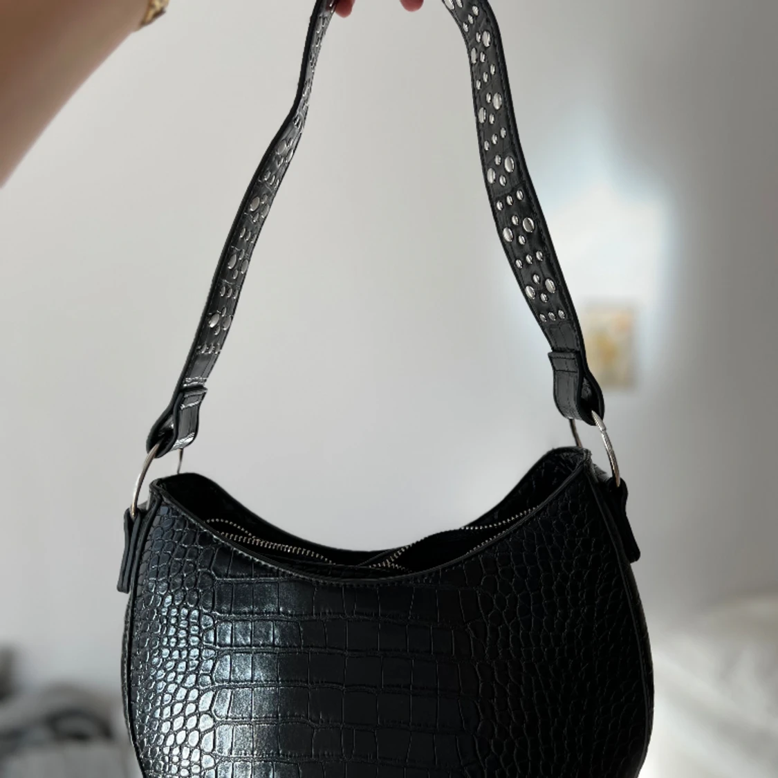 Svart axelväska i mycket gott skick. Kort axelband, går ej att förlänga.