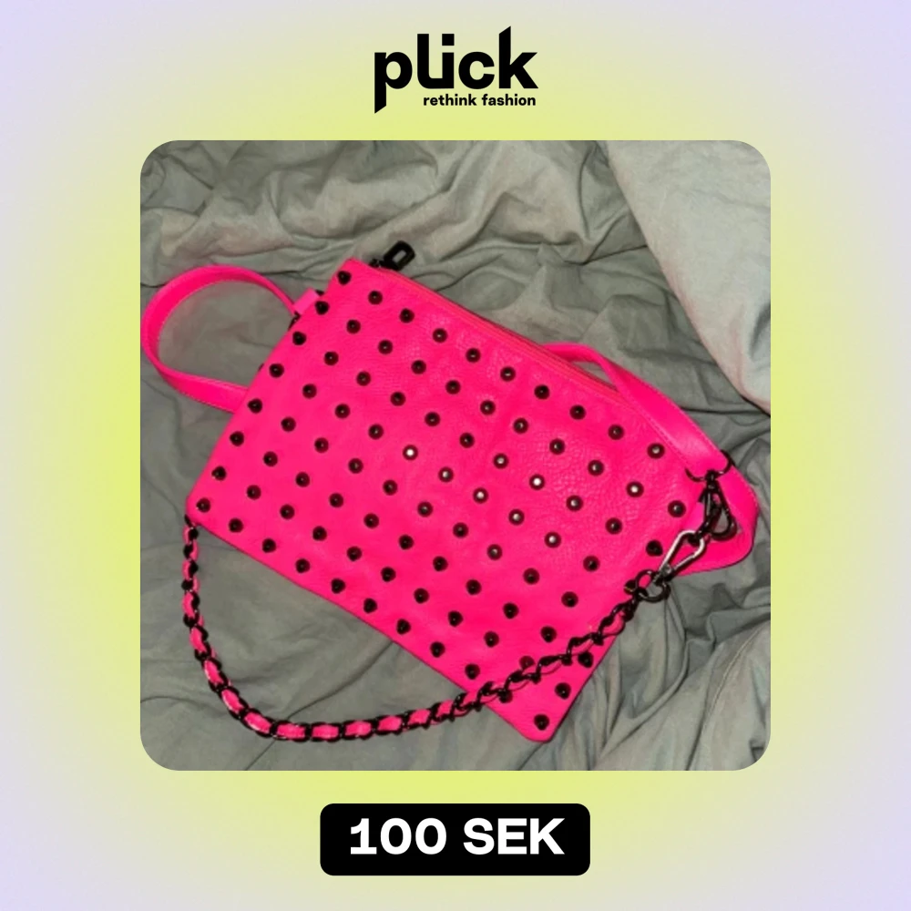 Säljer denna supercool neonrosa axelväska med svart/silvriga nitar. Aldrig använd och köpt på Shock i Göteborg 🙌🏽