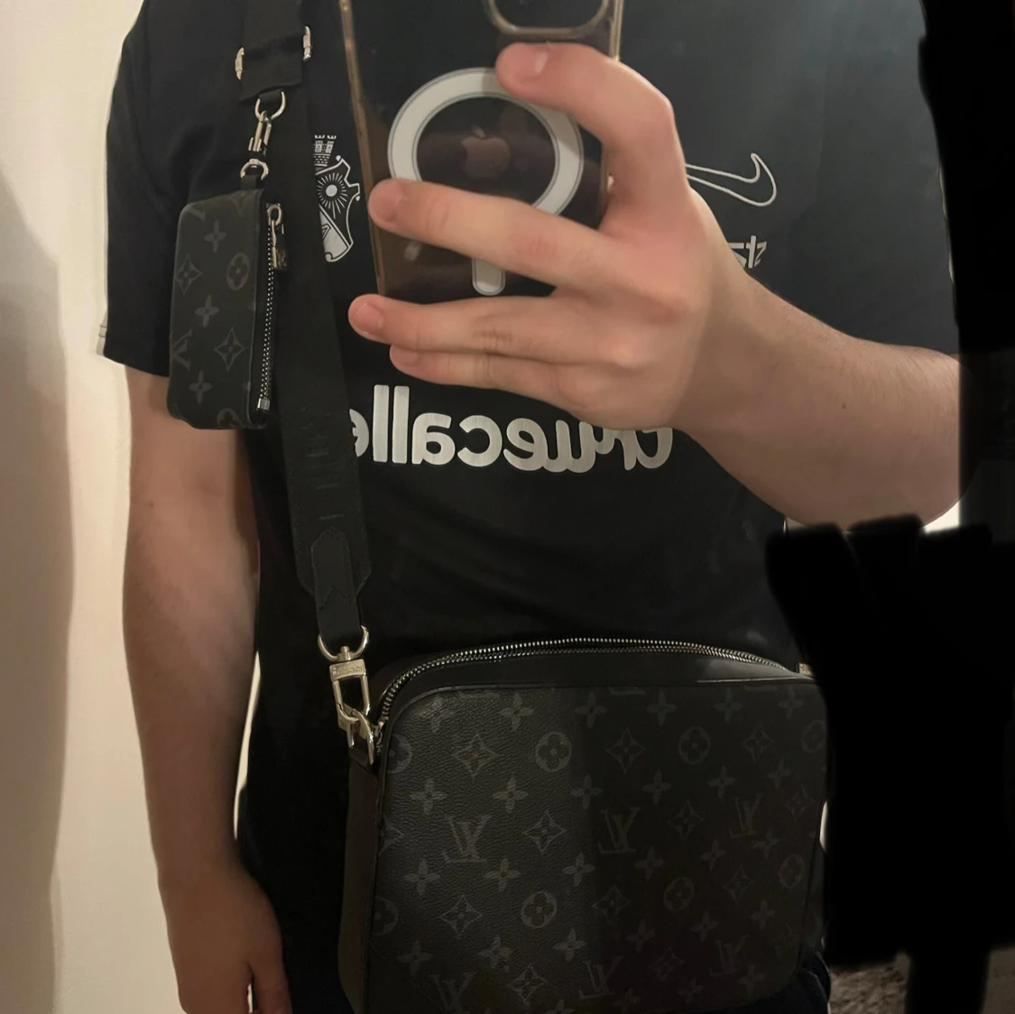 En snygg svart Duo väska perfekt för nån som gillar lyxiga men ändå praktiska plagg, väskan rymmer mycket och är väldigt enkel att matcha med andra plagg, inget fel på den alls och säljs pga den inte kommer till användning hos mig nå mer