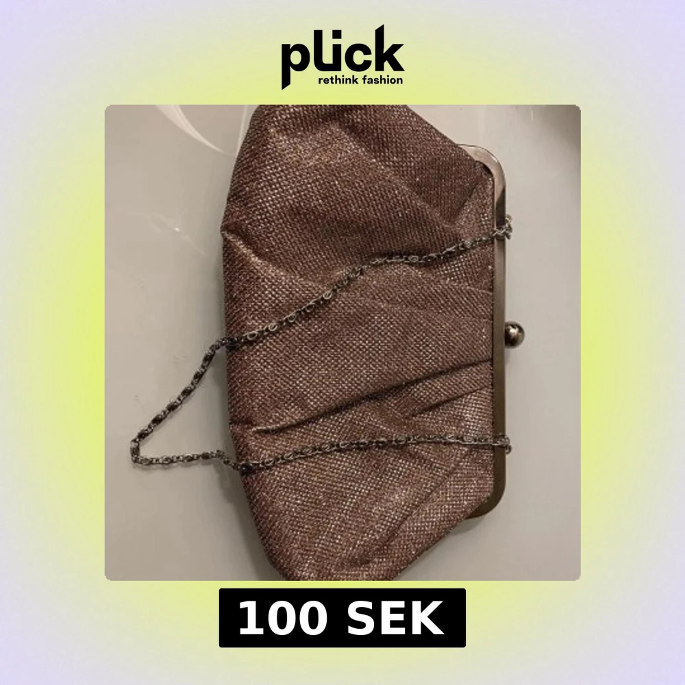 Snygg brun glittrig kuvertväska från Accessorize med en elegant kedja som axelrem. Väskan har en metallram och ett knäppe upptill. Insidan är fodrad med ett matchande brunt tyg och har en liten ficka för extra förvaring. Perfekt för att ge en touch av glamour till din outfit!❣️💫