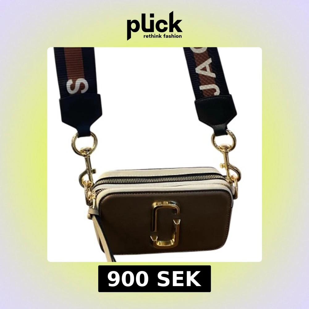Säljer en snygg och trendig Snapshot axelväska guldigt skinn med stora guldfärgade metalldetaljer och logga framtill. Väskan har bred, justerbar axelrem med logotyp och dubbla dragkedjor upptill. Perfekt för att lyfta vilken outfit som helst.