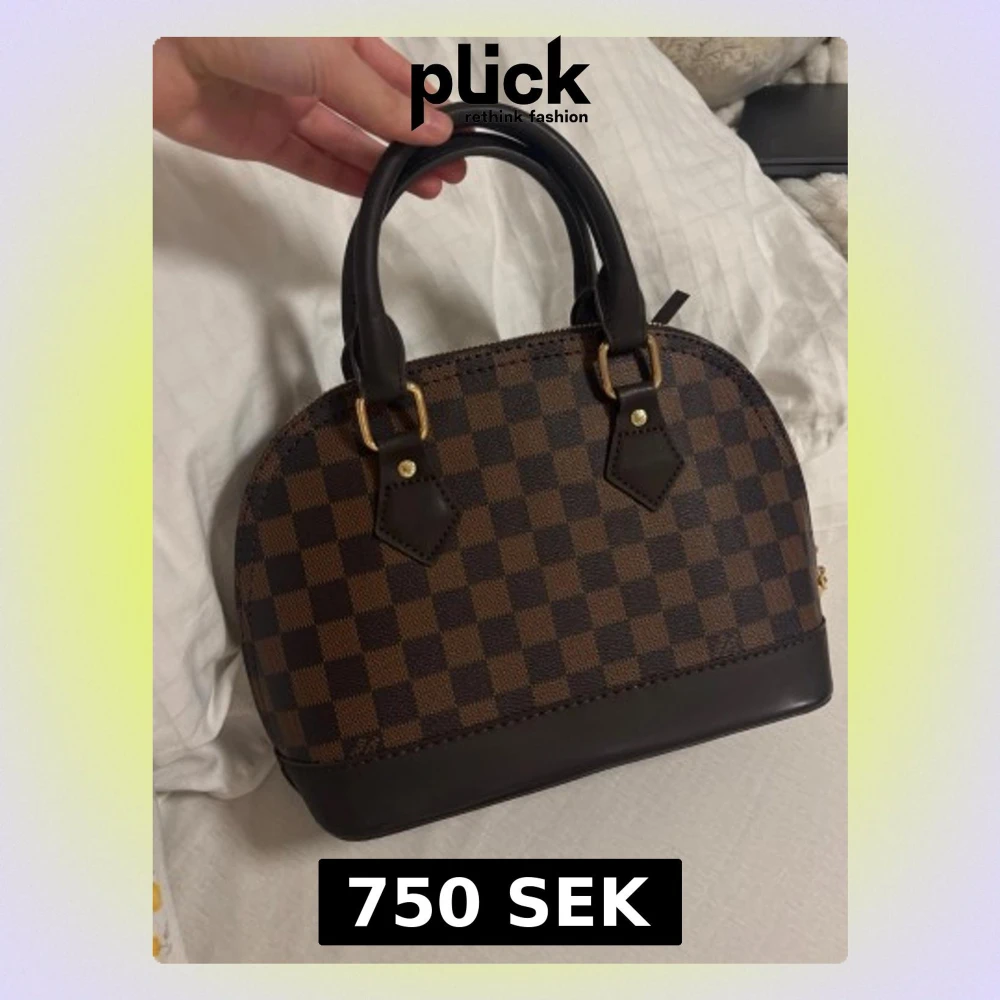 Säljer en snygg handväska med klassiskt brunt och mörkbrunt rutigt Damier-mönster. Väskan har guldfärgade detaljer, lås och dragkedja, samt mörkbruna handtag i skinn. Insidan är klarröd och har en innerficka med dragkedja. Använd en gång och i otroligt bra skick.❤️