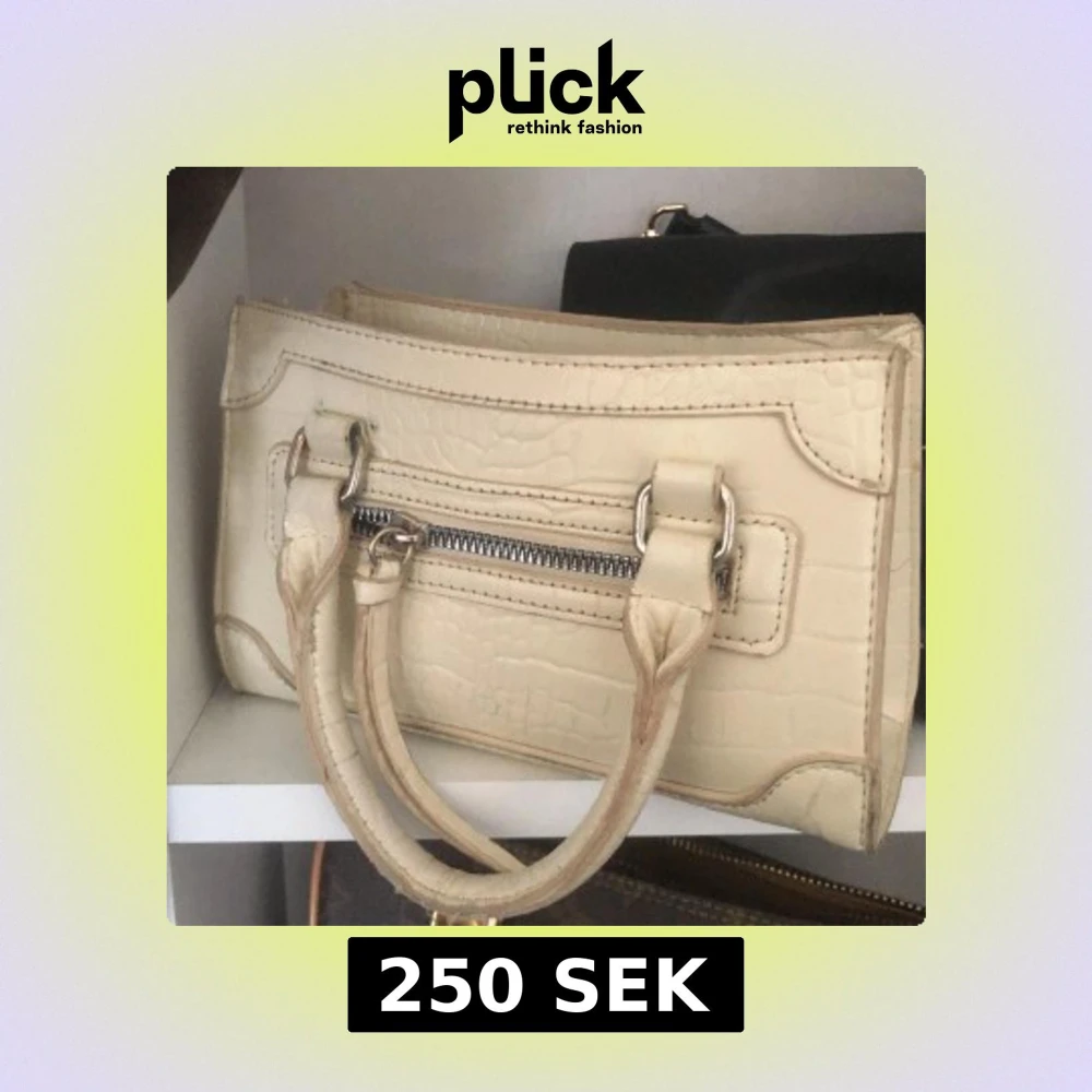Snygg beige handväska med krokodilmönster och praktisk dragkedja framtill. Väskan har två handtag och en avtagbar axelrem för flexibilitet. Perfekt för att ge din outfit en stilren touch. Pris kan diskuteras såklart💕